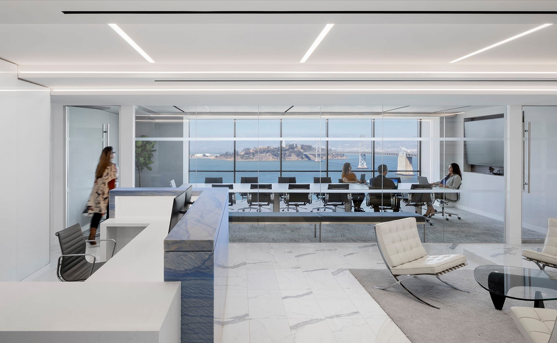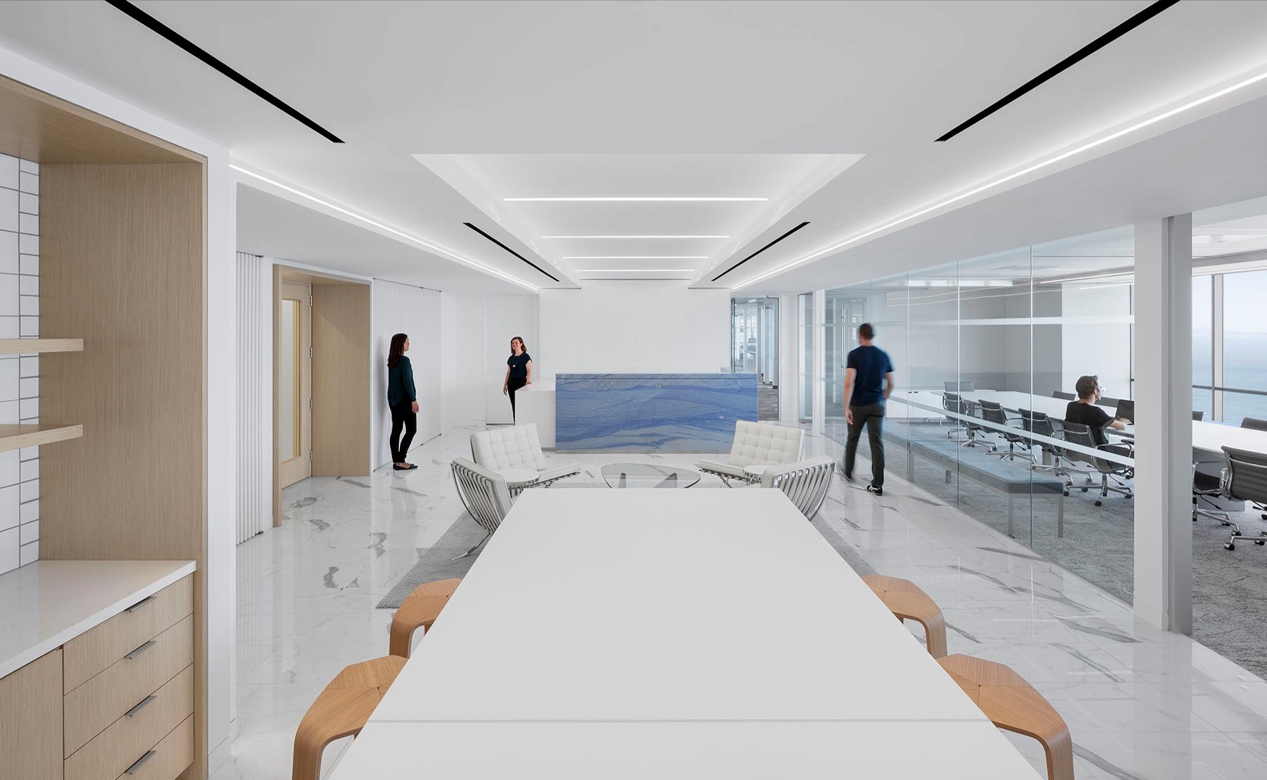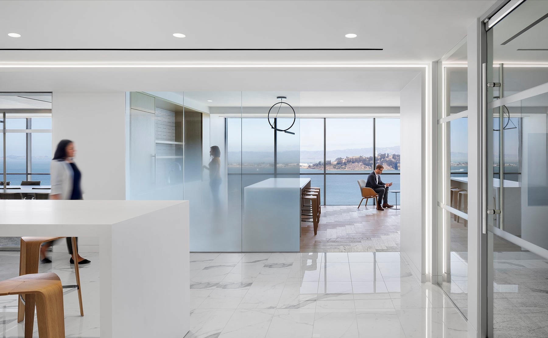 雾化玻璃隔墙、漂亮的纹理大理石、斜面墙体、以及精品家具配置,让这里呈现出酒店般精致时尚的空间质感。