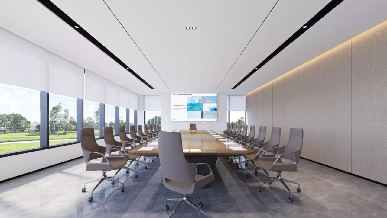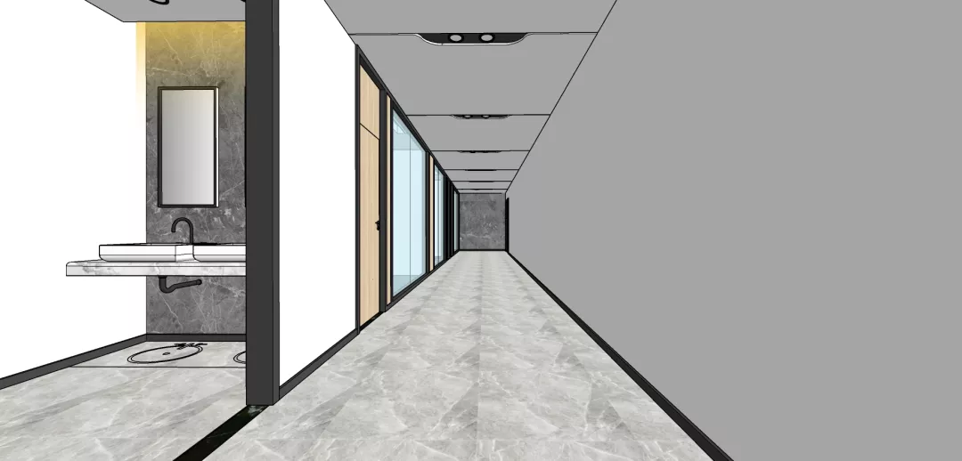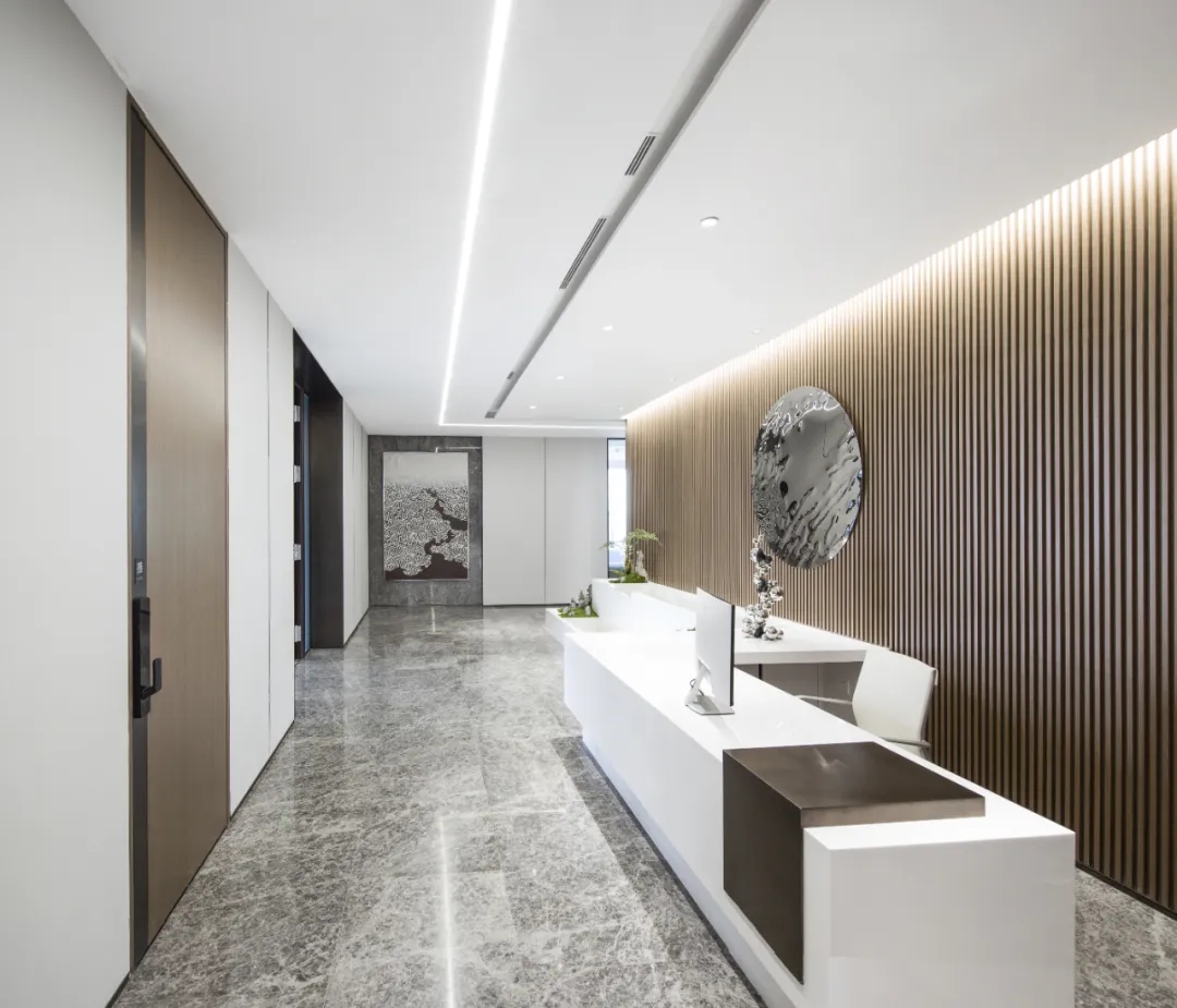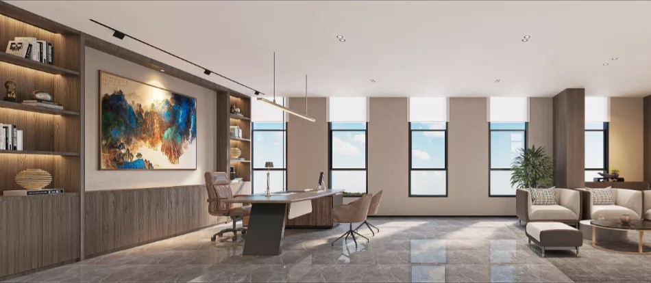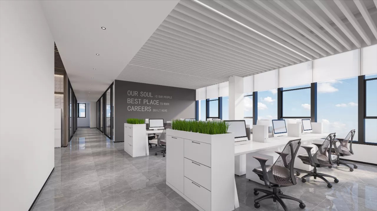 运用黑白灰作为整个空间的主色调设计,打造干净明亮、高效、简洁的办公空间