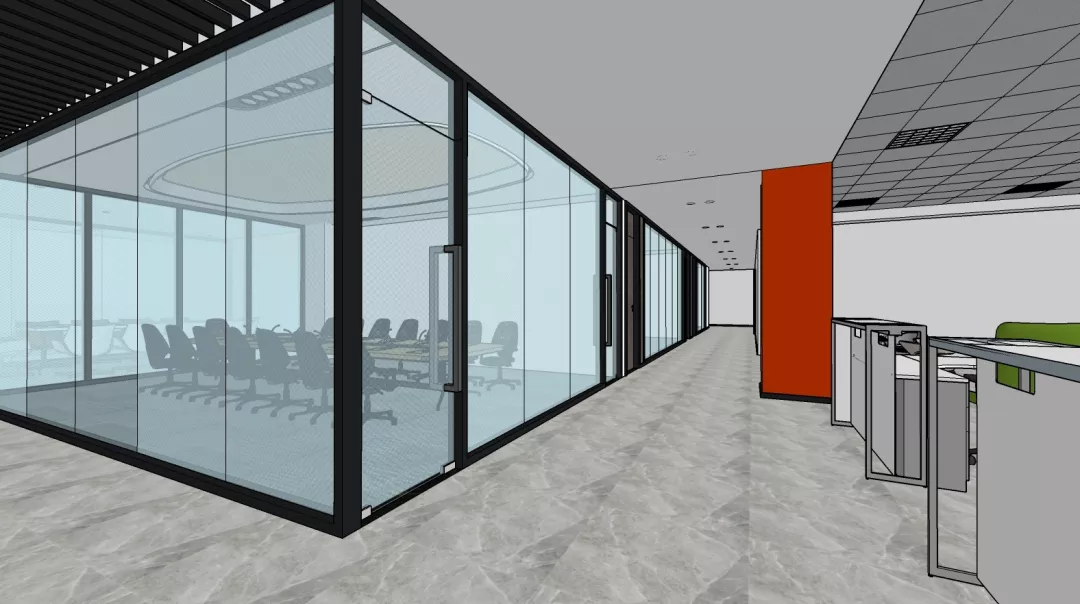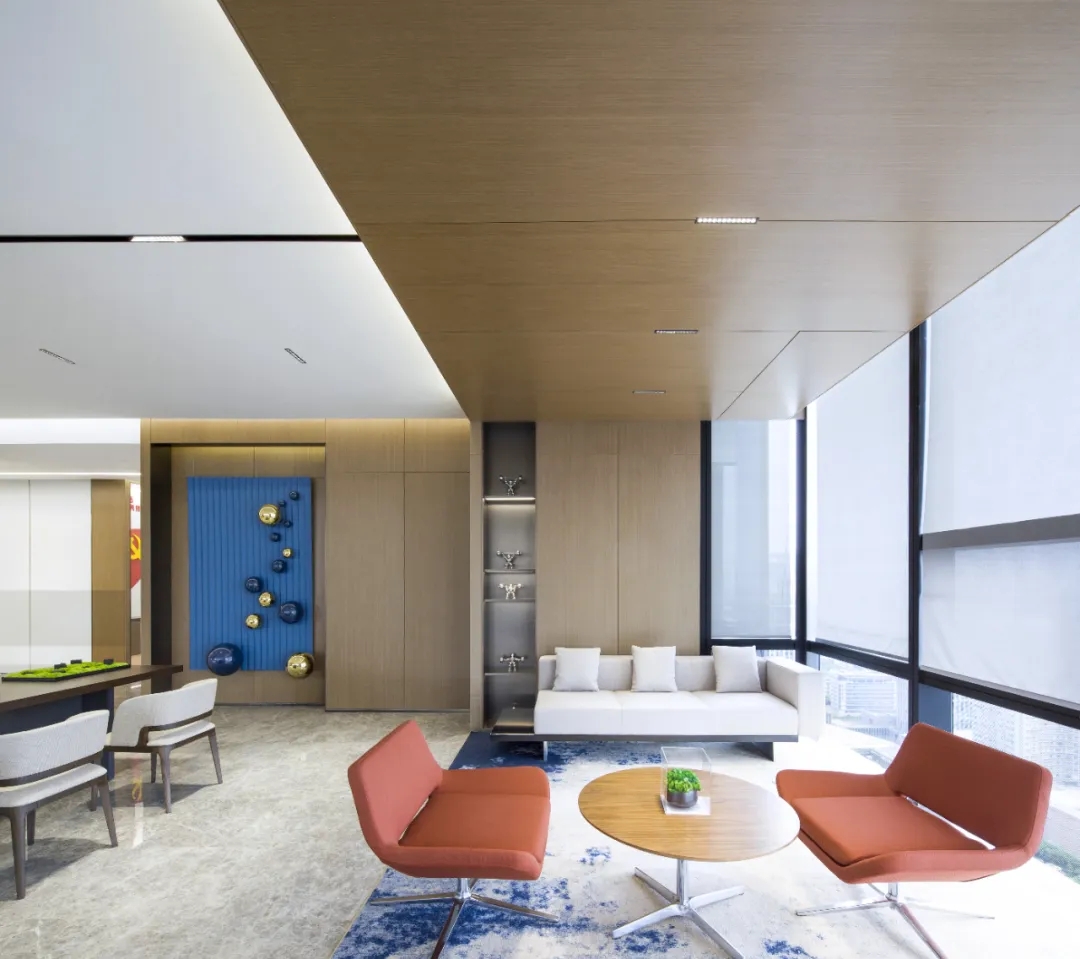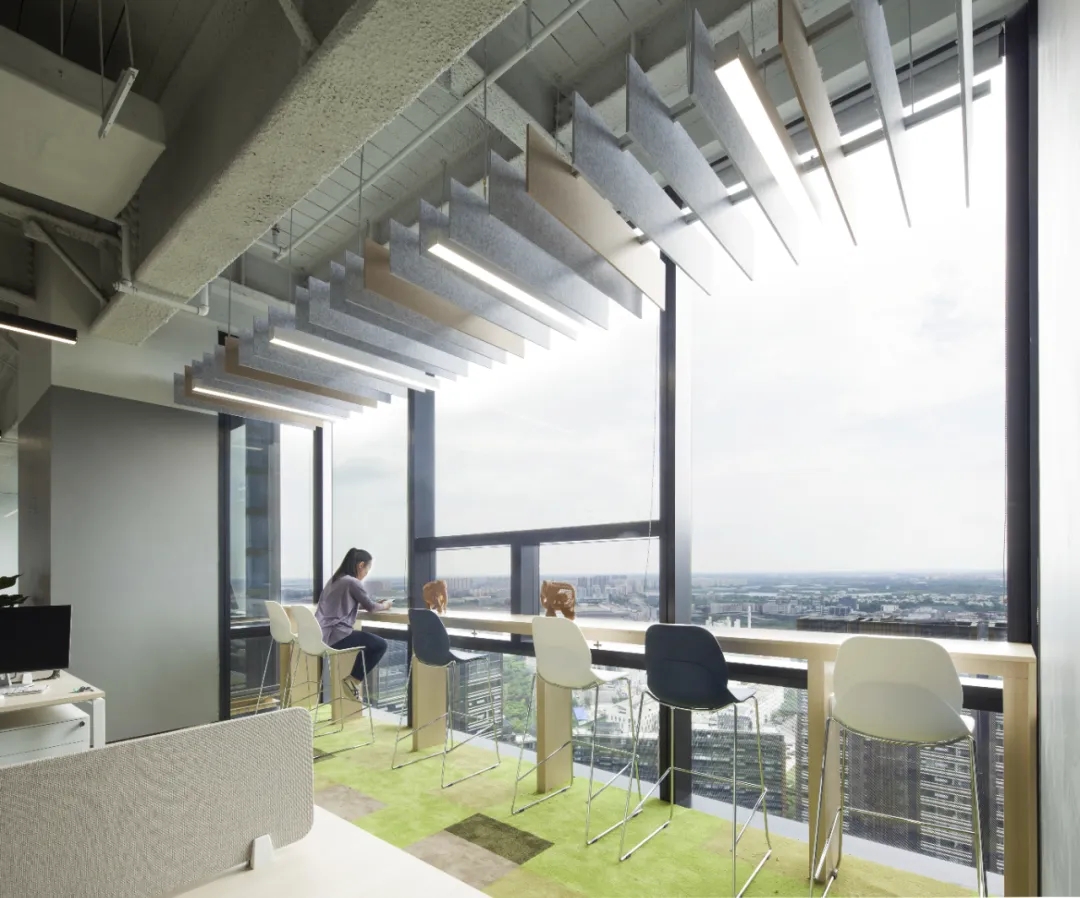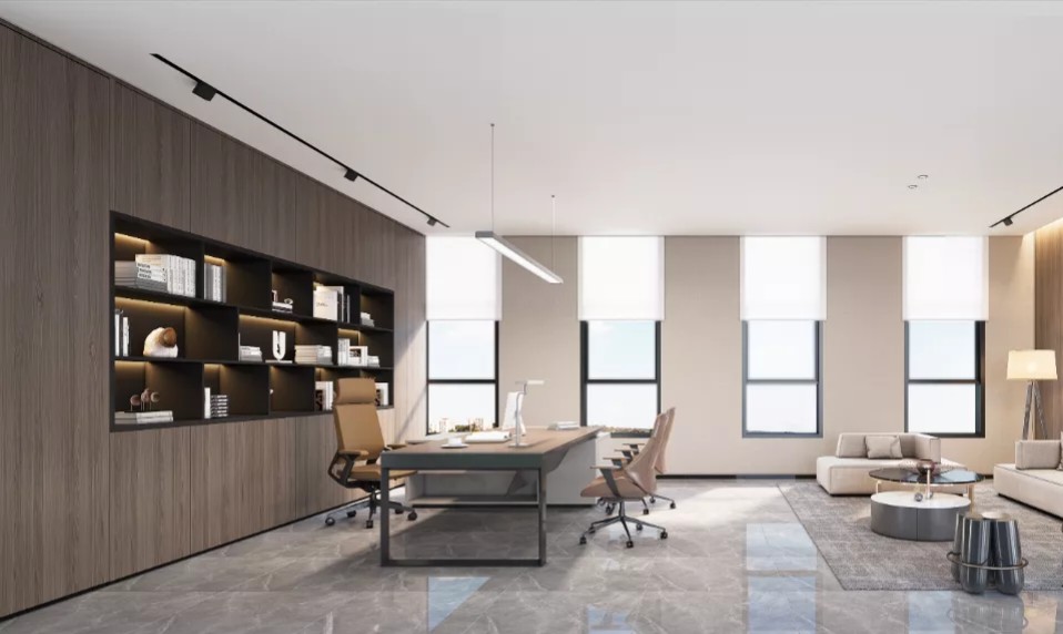 运用黑白灰作为整个空间的主色调设计,打造干净明亮、高效、简洁的办公空间