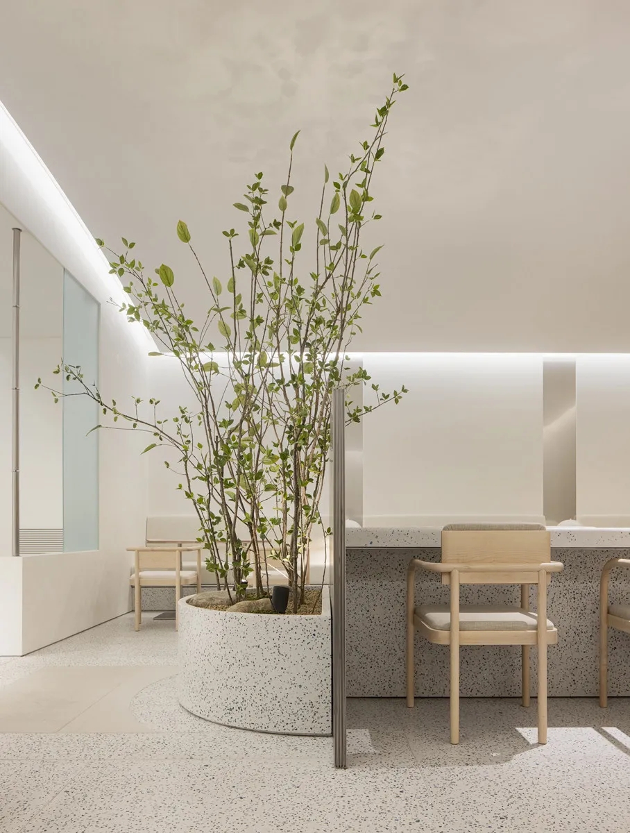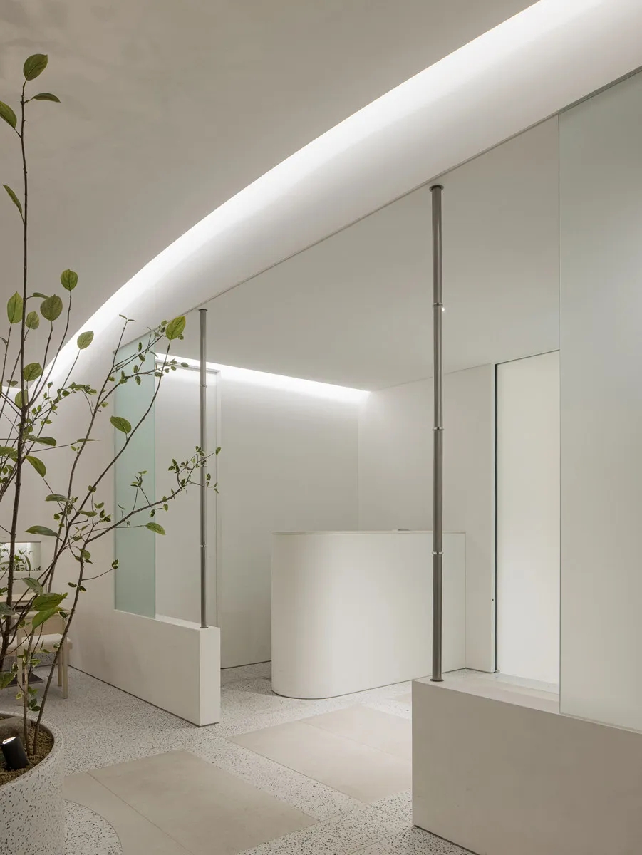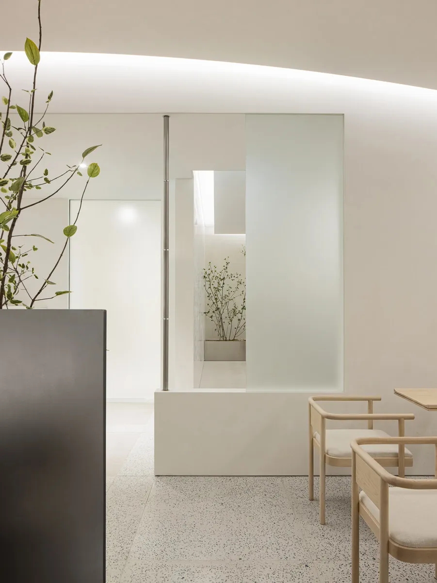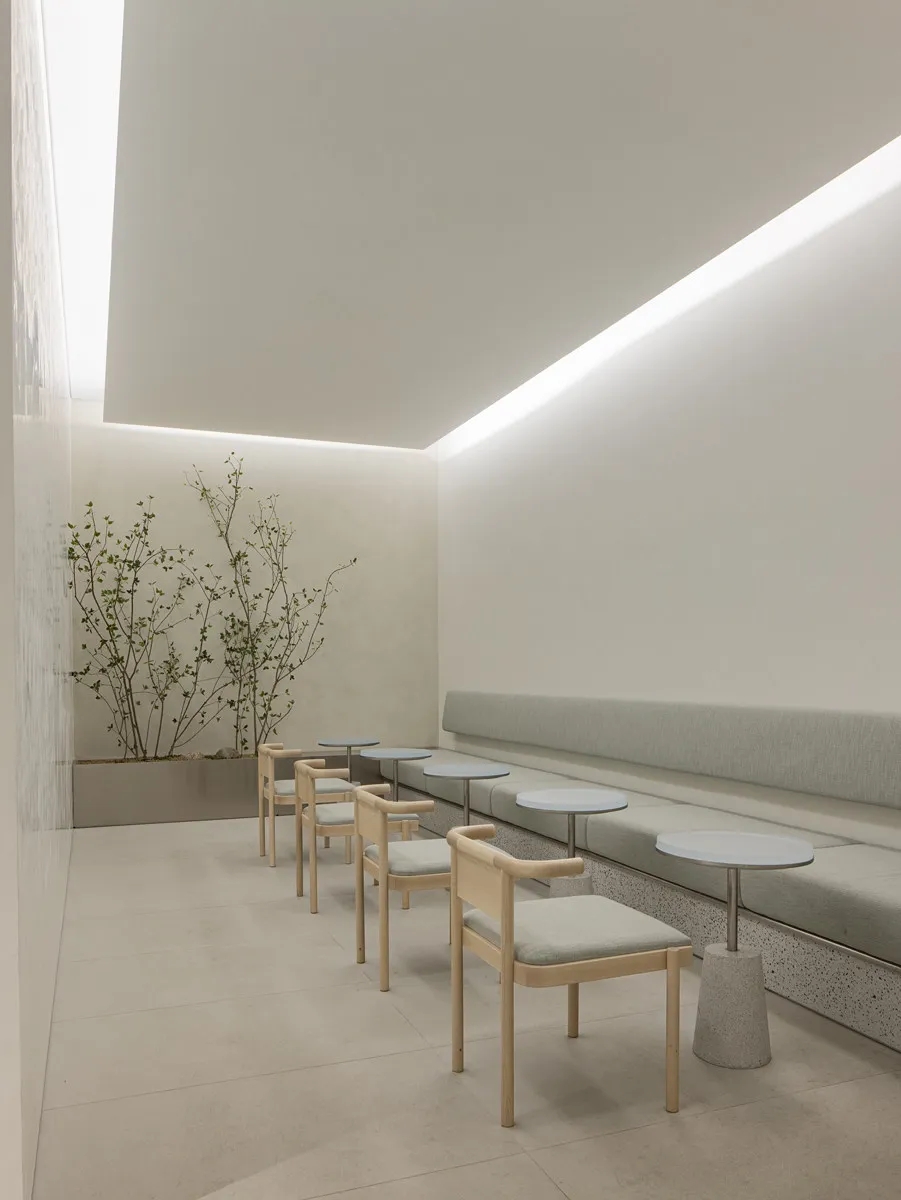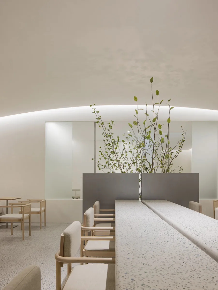 该项目以汽车的形状、功能和颜色建立了一种设计语言。首先,通过茶杯的优雅曲线、整齐的茶几造型和干净的布置,将茶的形状空间化。然后,通过汽车将汽车的功能转变为宁静的休憩、交流、独立的空间。从入口处,茶杯形状的优雅曲线引导顾客的运动流线,当使用者进入空间时,面对的低隔断、花坛、对称分割的结构和天花板的优美曲线是一种与众不同的身份,让客人有一种置身于温暖茶杯中的舒适感。在中央布置的中央酒吧,高度和宽度被调整为从正面看时不可见,这样就可以感受到休闲和私密而不累赘。该项目通过深思熟虑地表达了分层序列,为原本单调的结构和流线赋予了生命力。