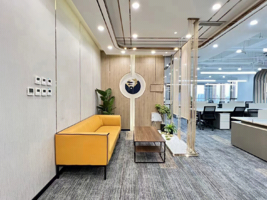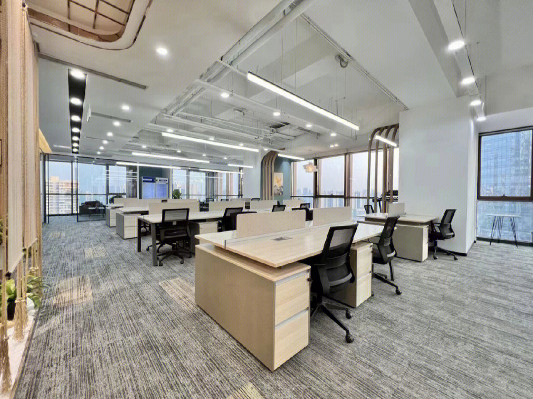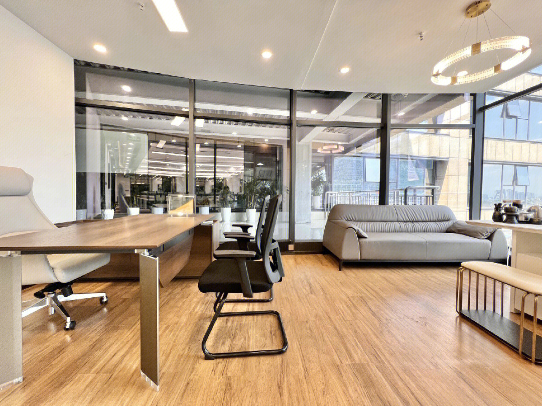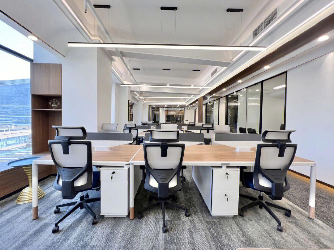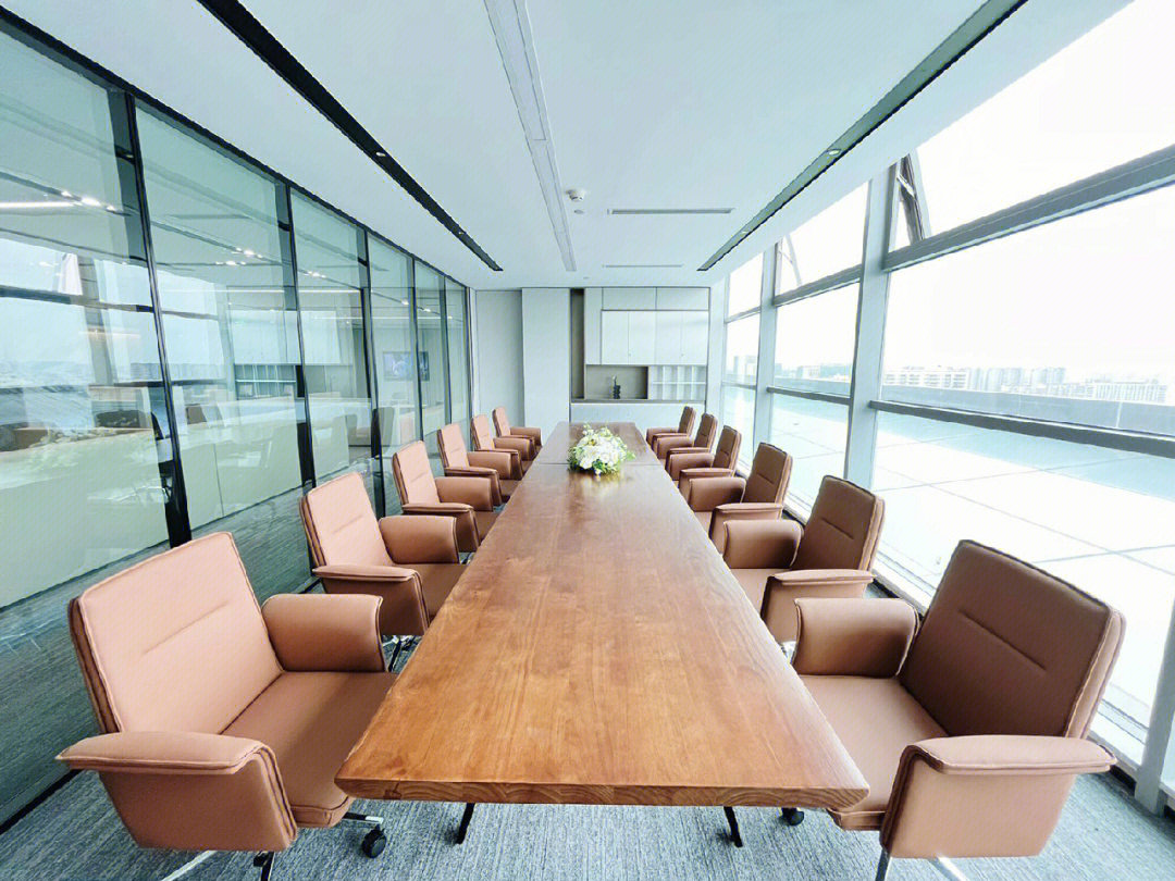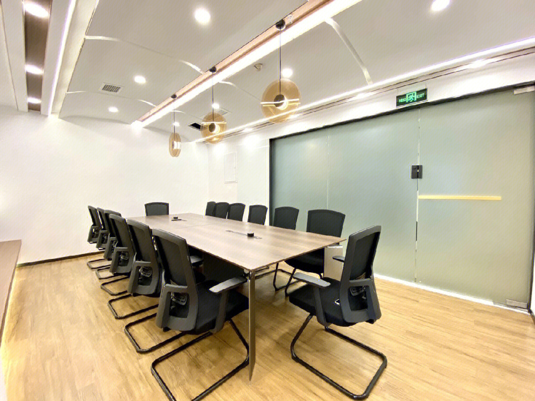 整体空间采用深色木材,与开放式办公区更轻、更明亮的材料形成鲜明的对比。
