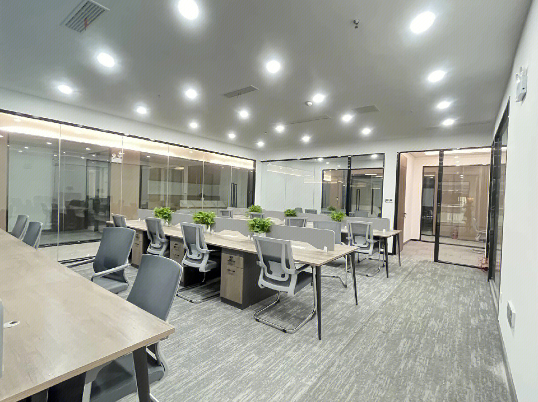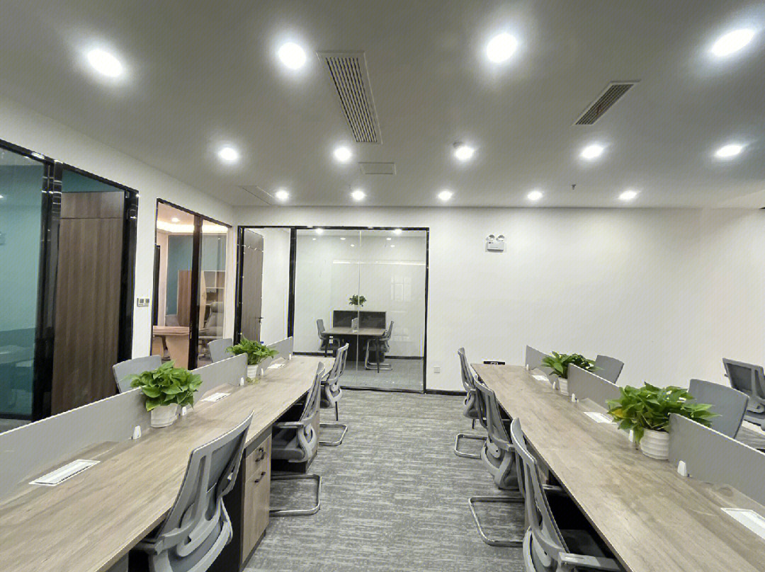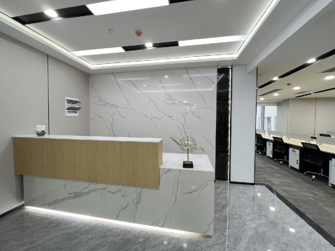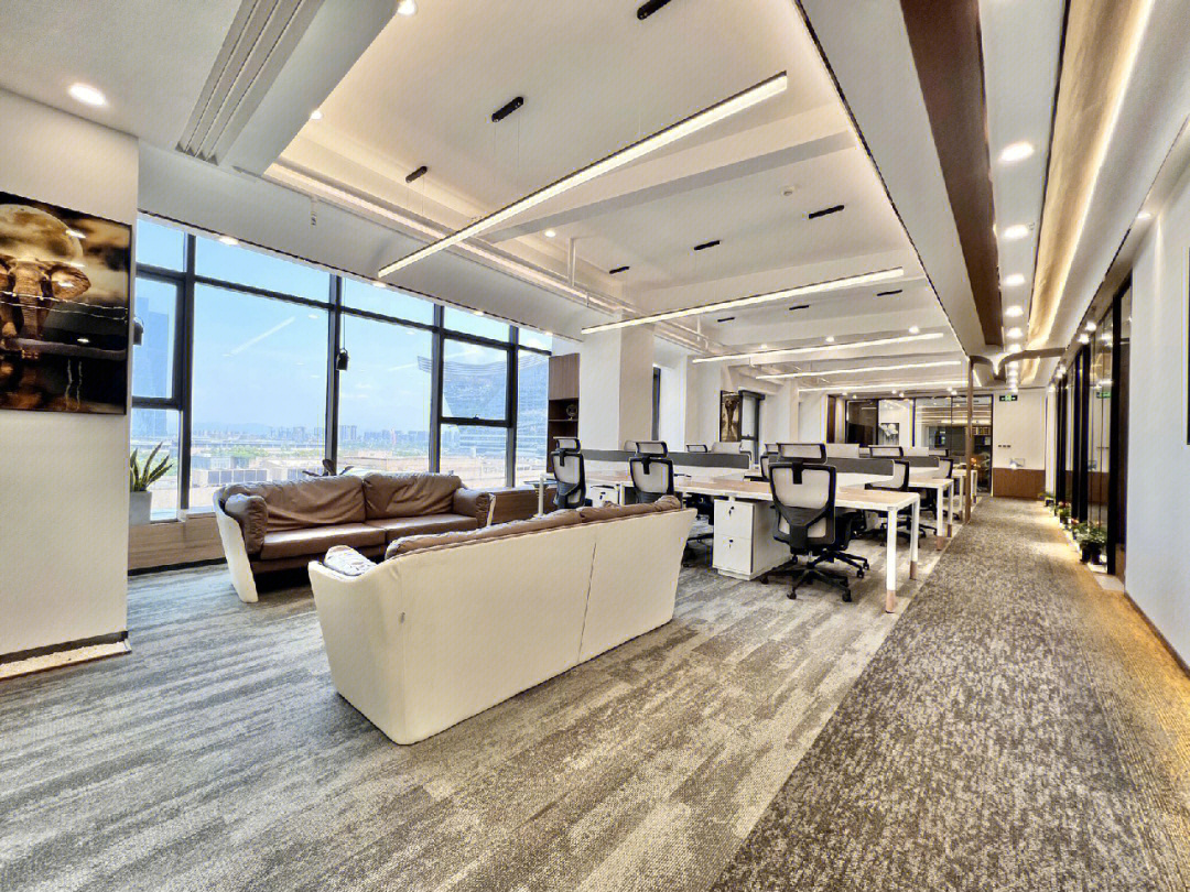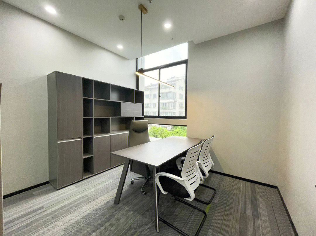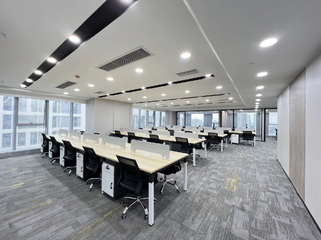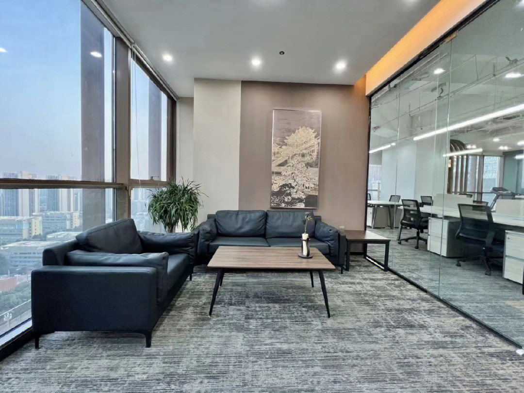 整体空间采用深色木材,与开放式办公区更轻、更明亮的材料形成鲜明的对比。
