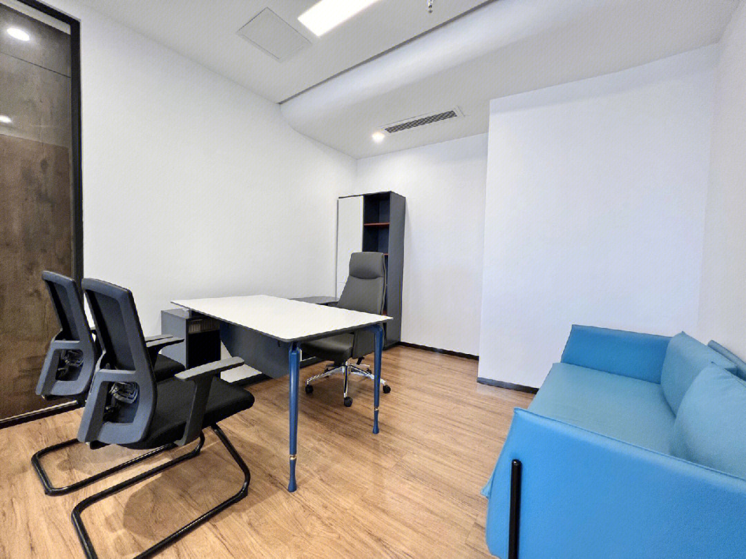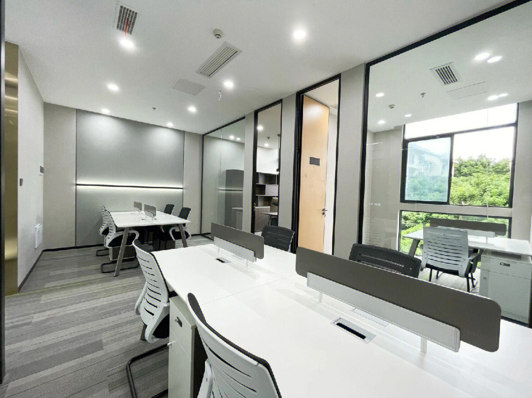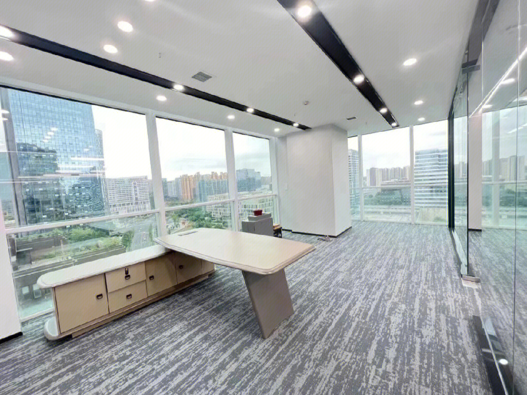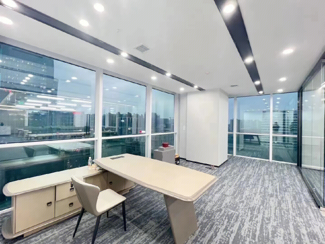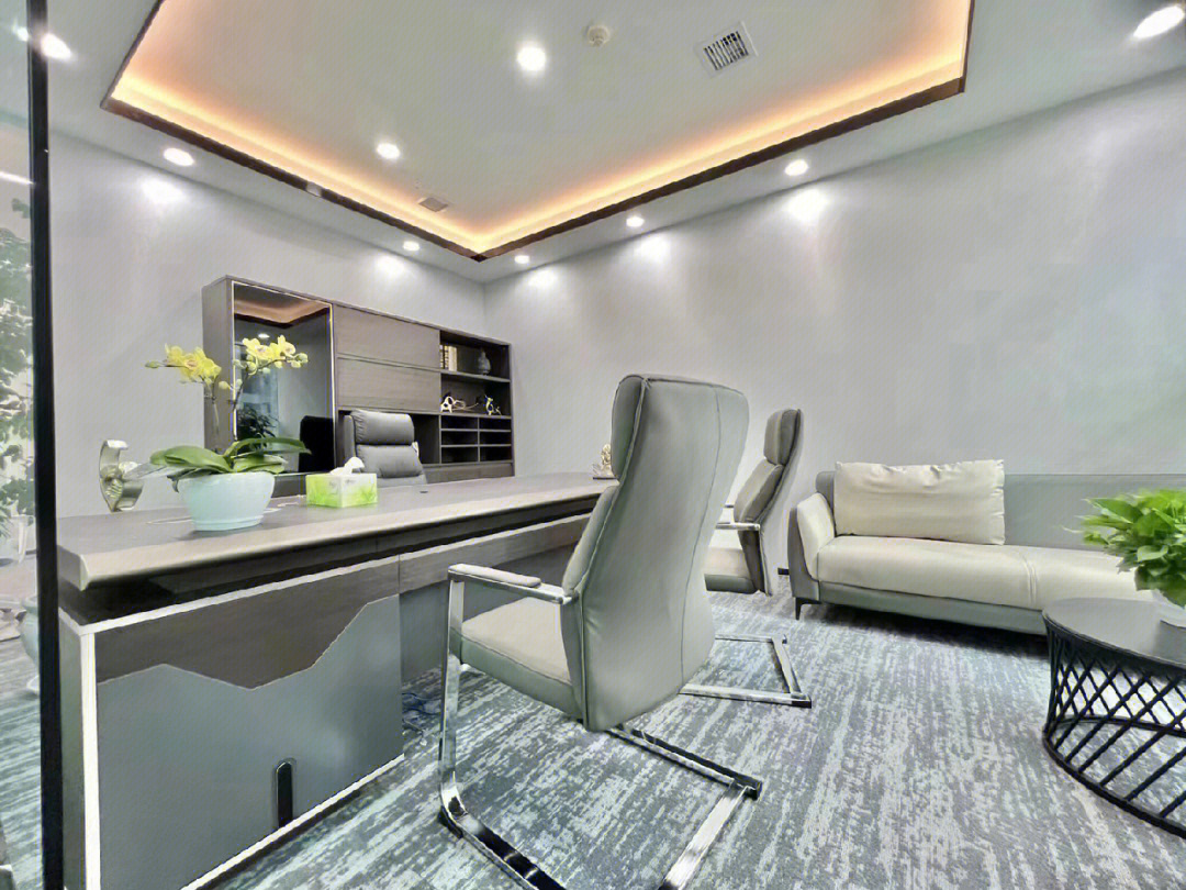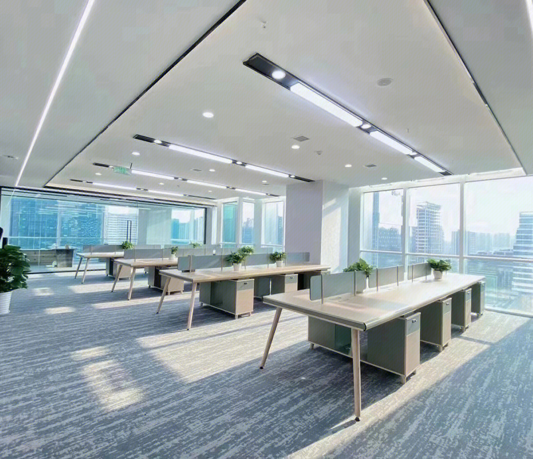 整体空间采用深色木材,与开放式办公区更轻、更明亮的材料形成鲜明的对比。