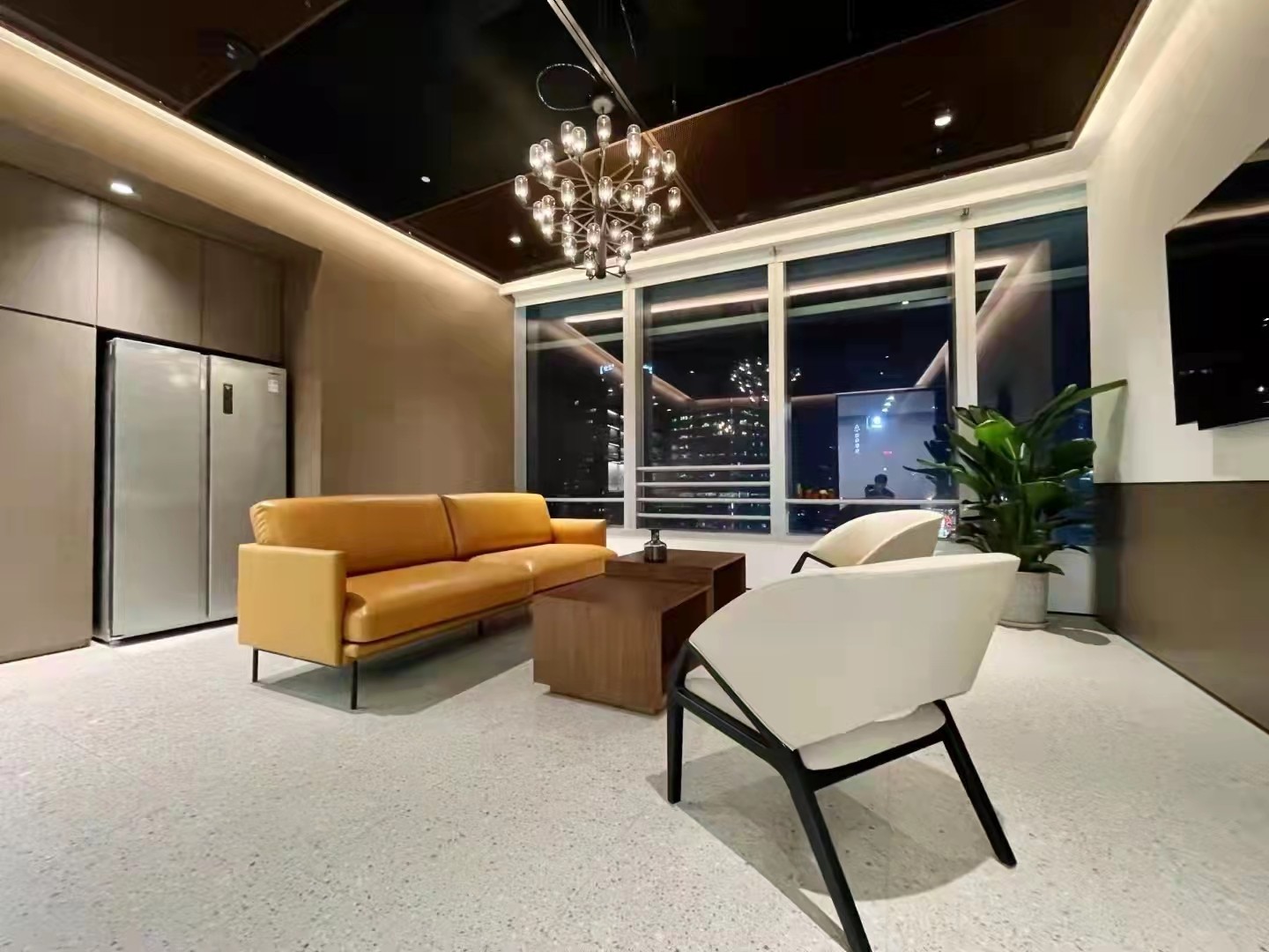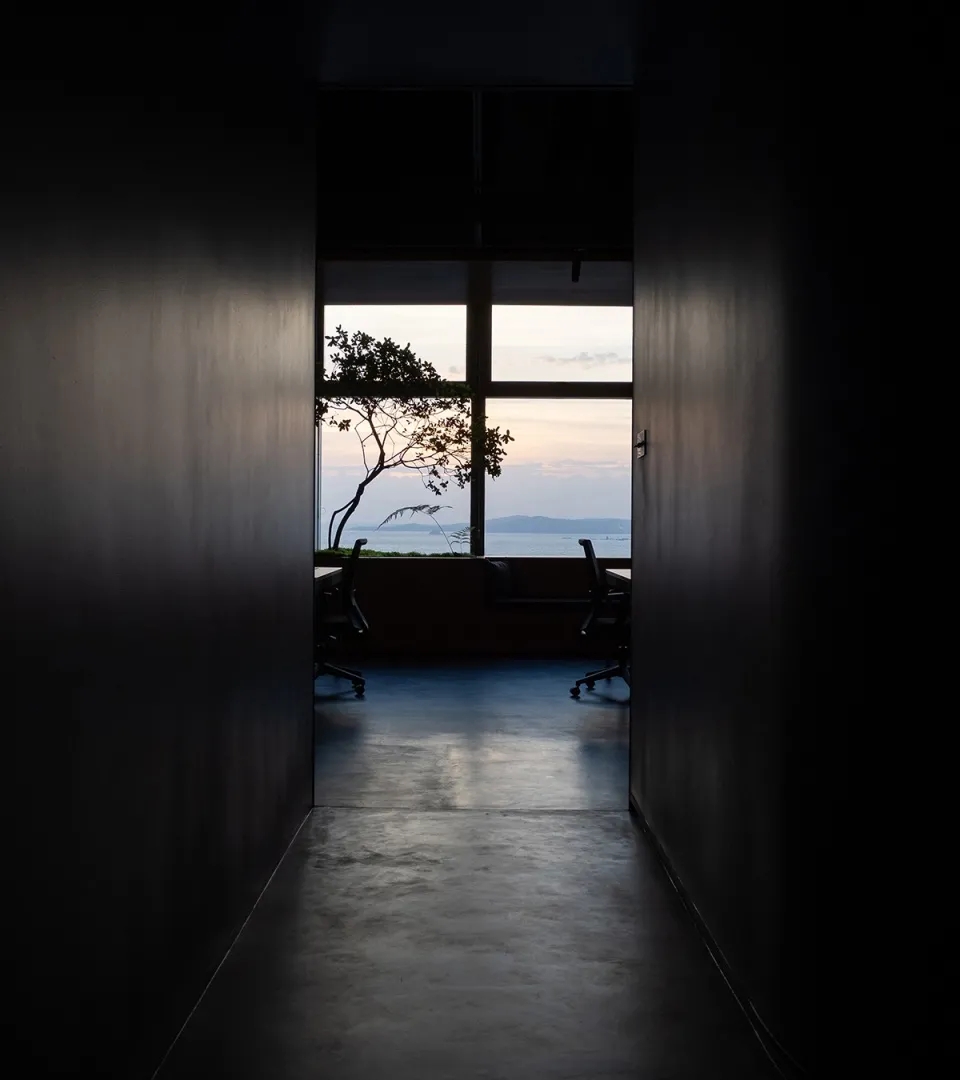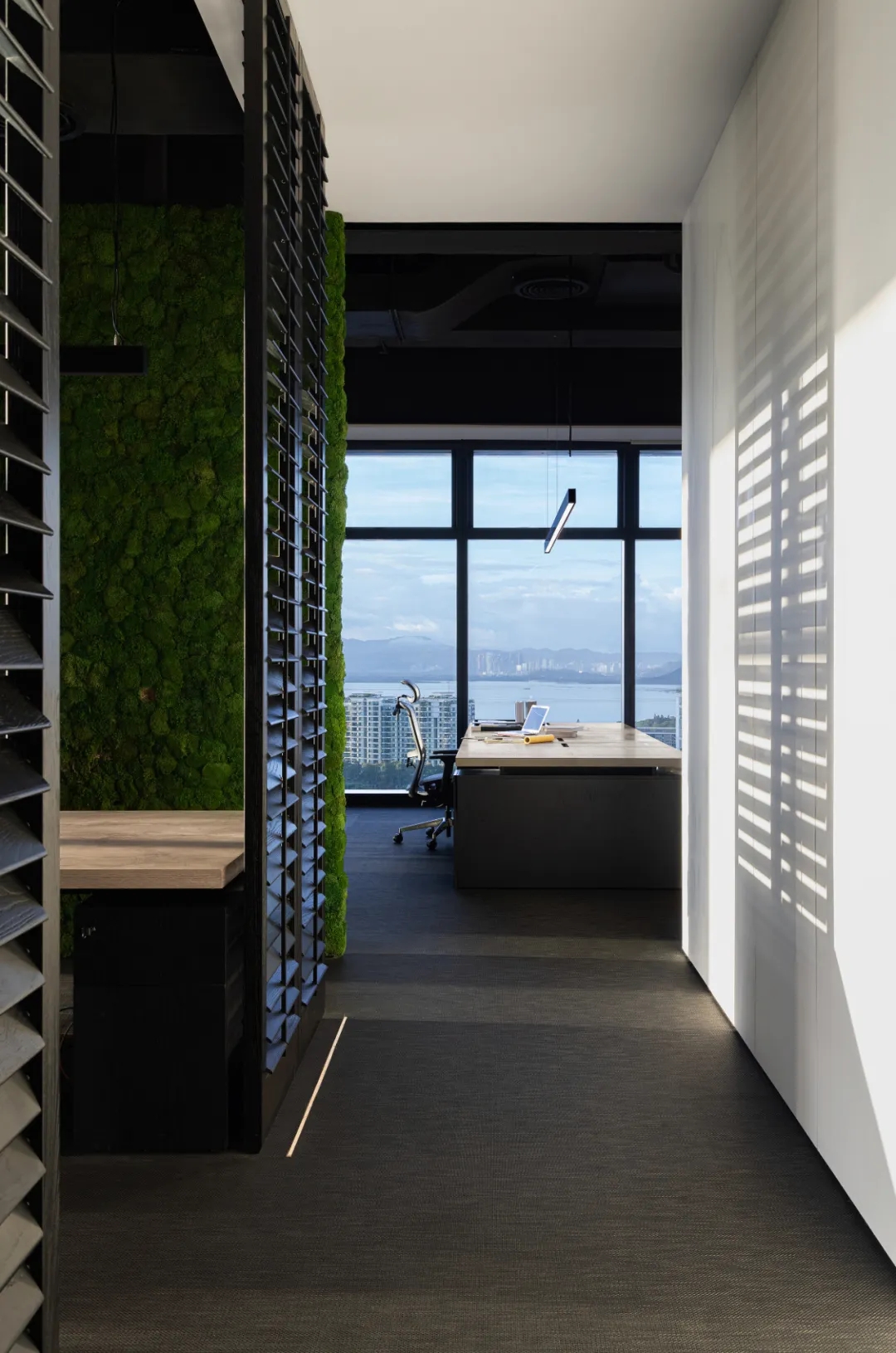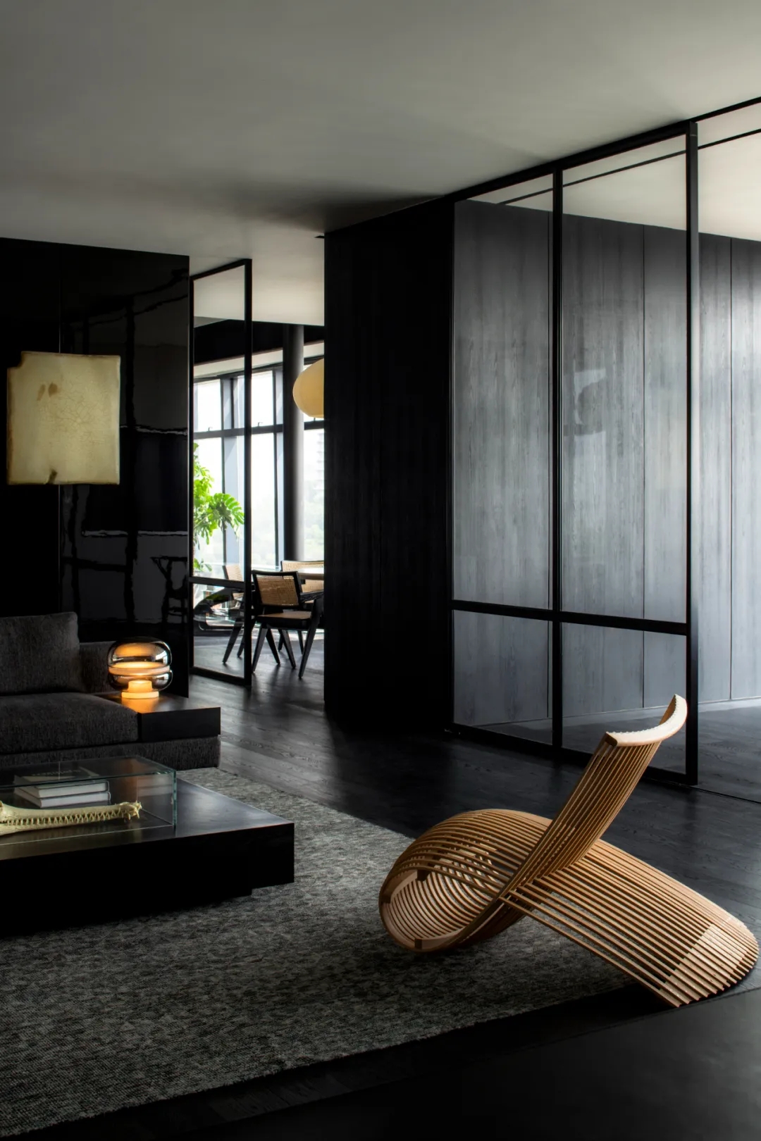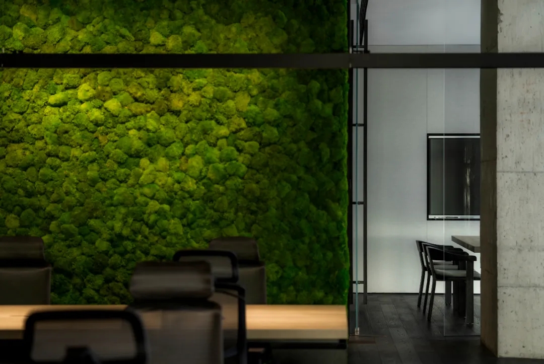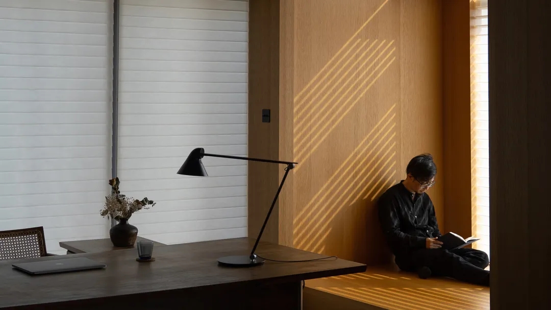 会客区内摆进舒适的中古沙发椅,像家中的小客厅,聊天讨论不必正襟危坐,也满足了喝咖啡、听音乐等日常需求。将工作生活的零碎通过大家具分门别类规整好后,设计的动作便告一段落。而橡木本身的温润质感,也在空间中平衡了与黑色天花、灰色微水泥地面之间的冷暖关系。