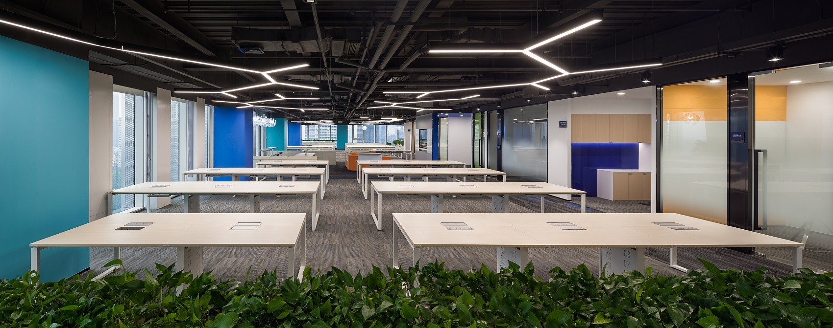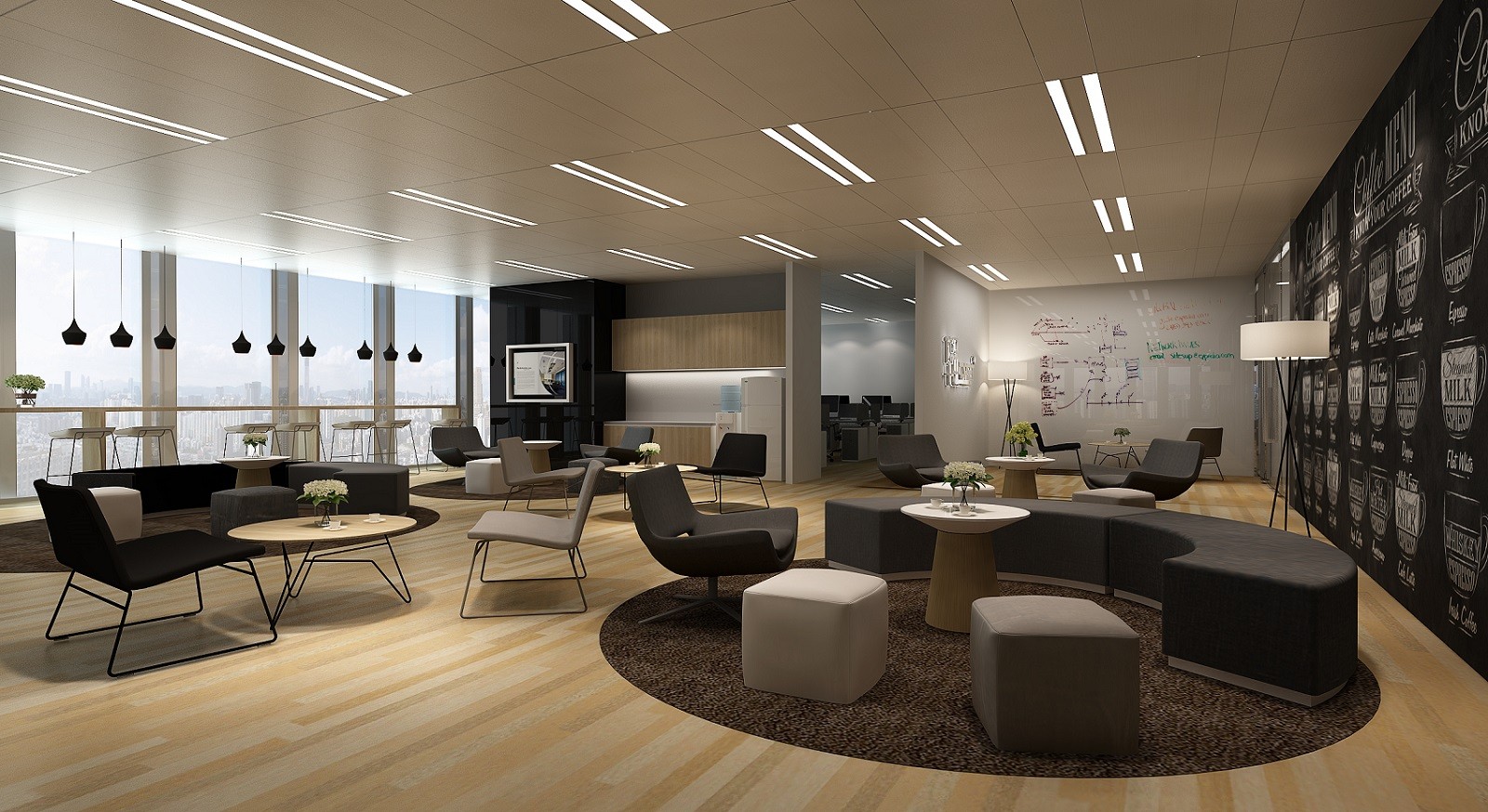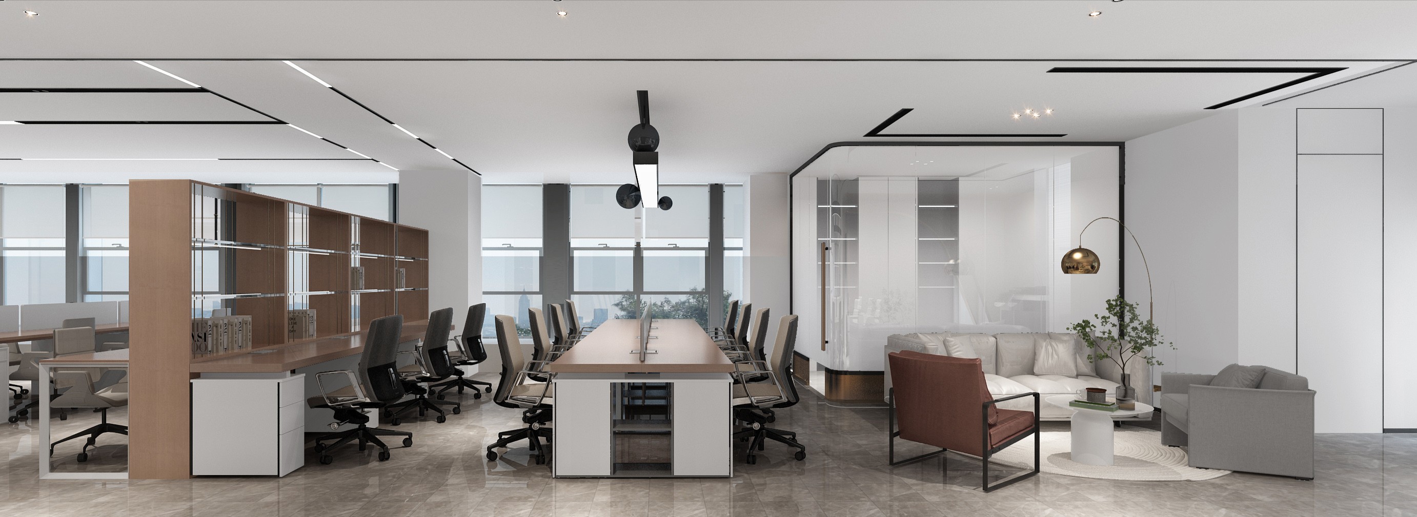 整体空间亦讲求现代化的时尚感与富含自然化的科技感之间的平衡与共融,哪怕每一处不起眼的小细节。任何一处空间都能接触到自然元素和美景风光。宽敞的窗户可以俯瞰楼下的车水马龙,或眺望远方的建筑,对自然光线的充分利用有助于改善员工的身心健康。而且可以随意移动拼接的座椅,有利于员工在进行协助或者进行头脑风暴的时候灵活摆放。