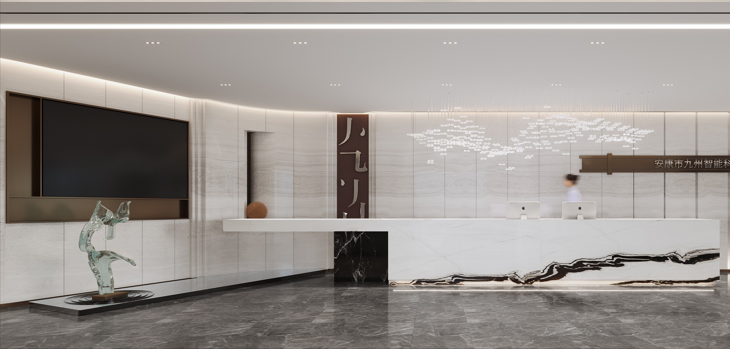 经久不衰的天然石材赋似流水纹路,如同巨大画幅从左侧缓缓铺开,描绘着九州气势与辉煌…