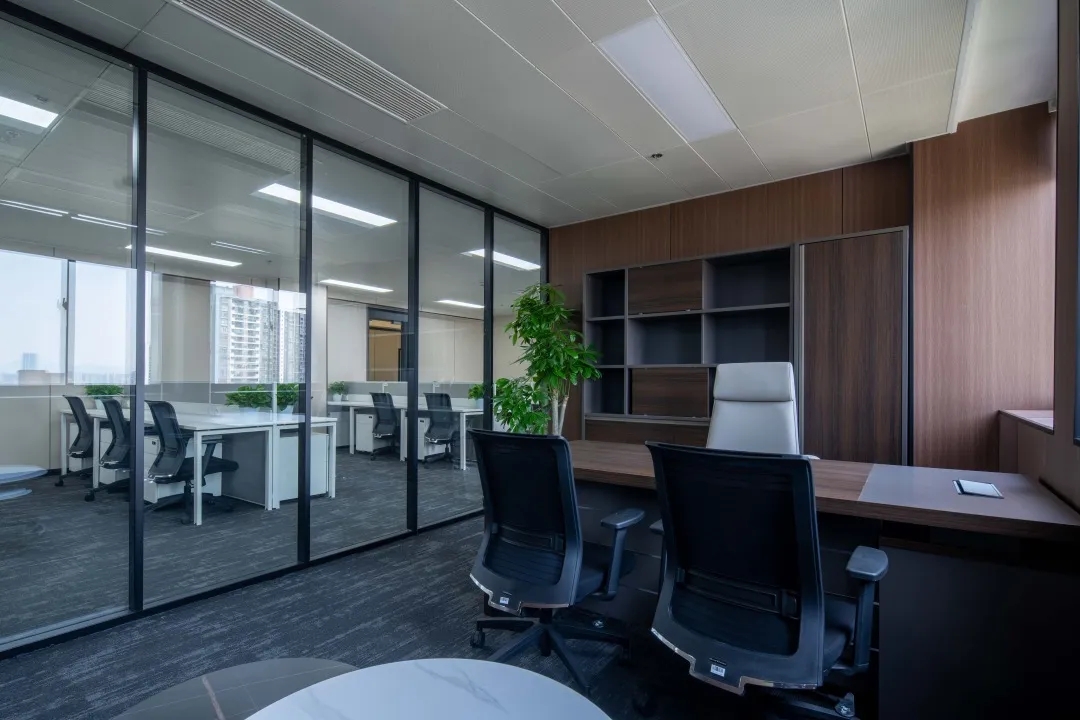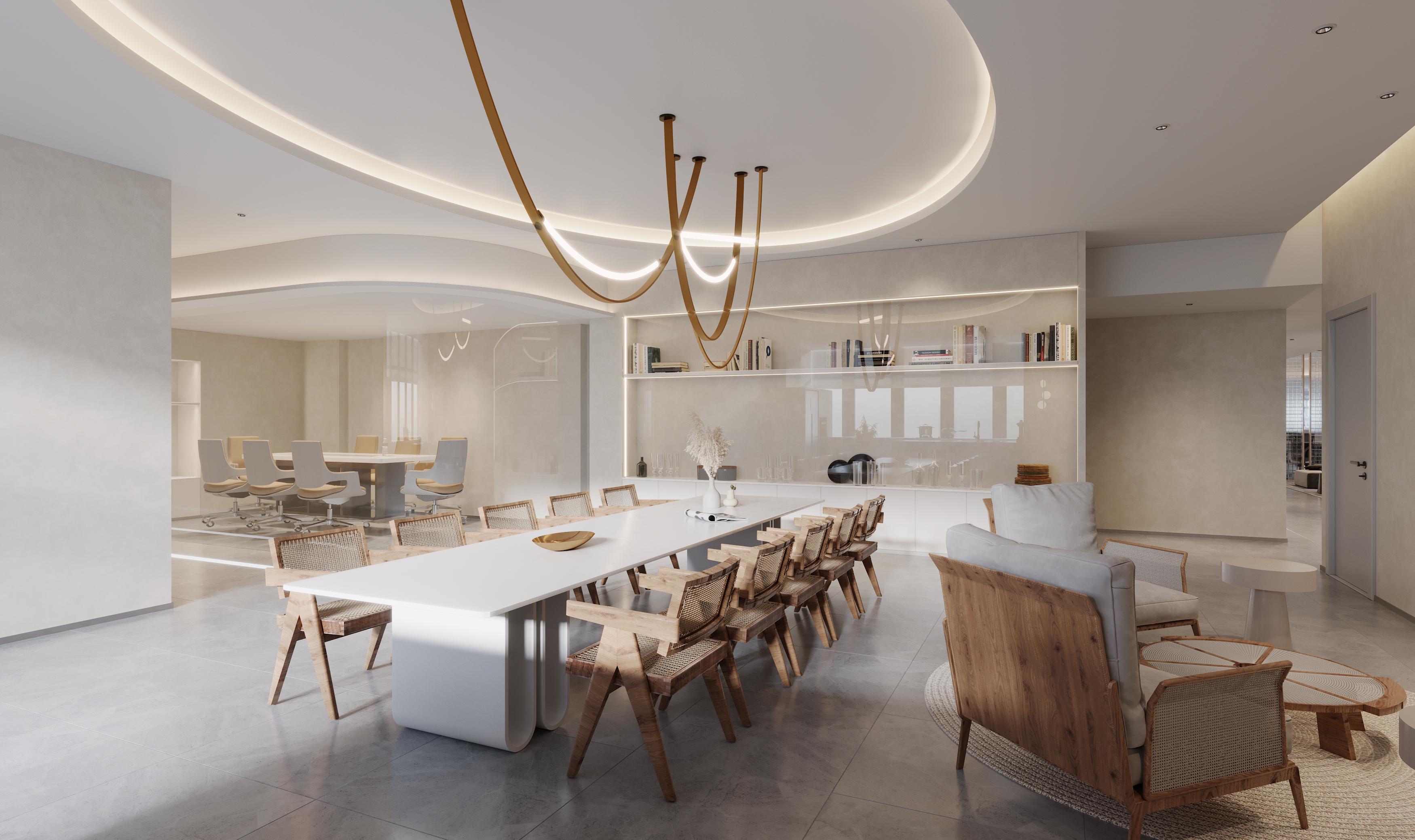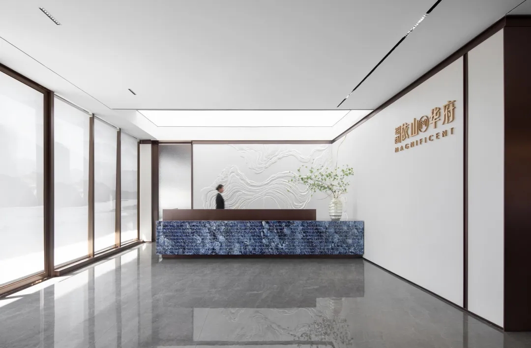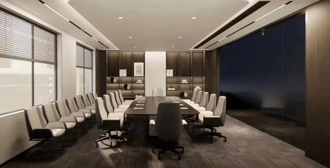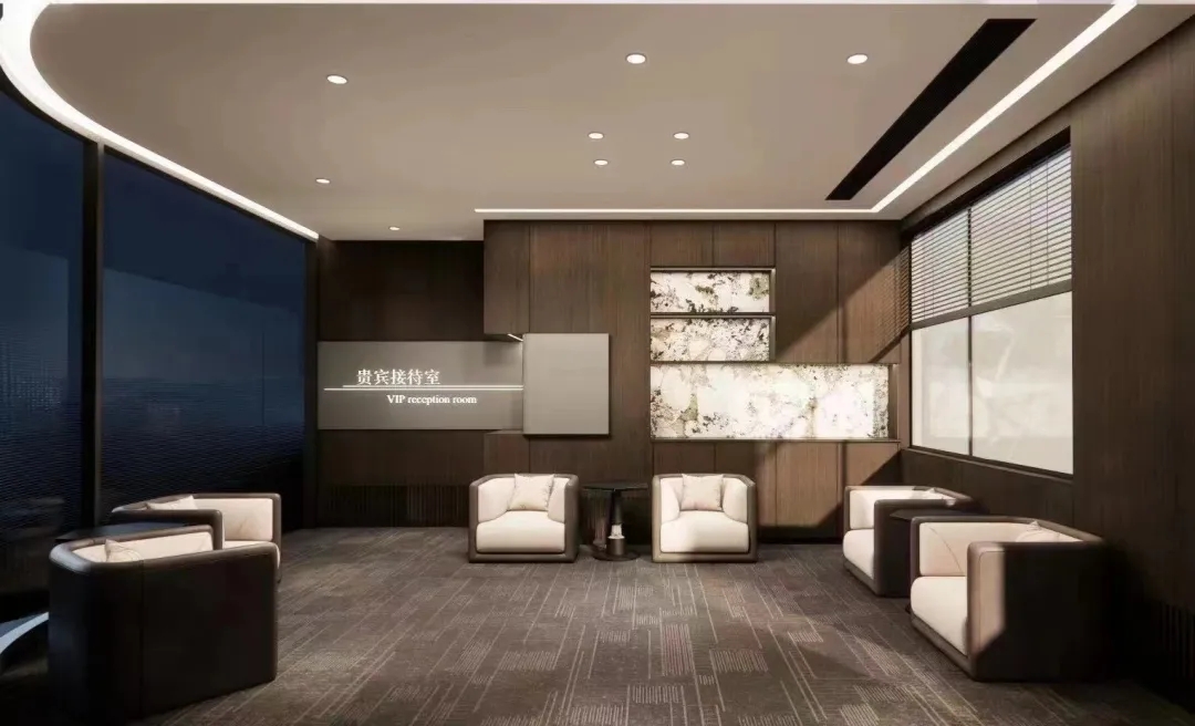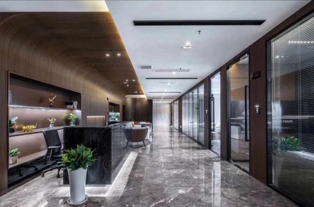 前厅接待区以干净的黑白灰为主色调,加以棕色、蓝色作为点缀,在凸显空间现代质感和精致大气之余,亦增加了空间的色彩层次和休闲格调。自由开放的空间氛围、充满艺术气质的家具和绿植配饰、舒适明亮的光线,营造出一个明快清爽、精致个性而又轻松愉悦的工作形态空间。