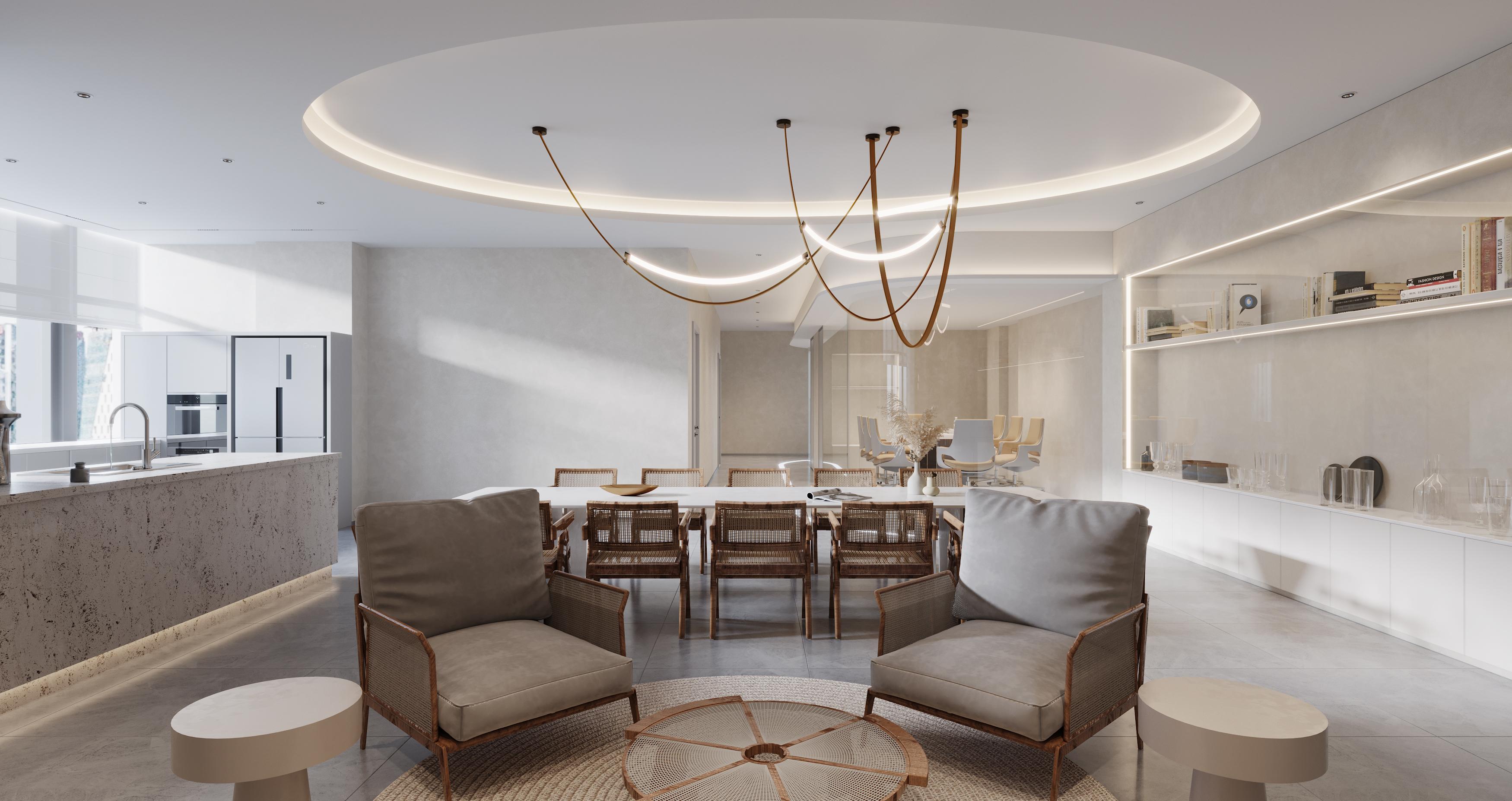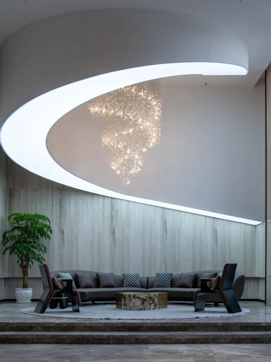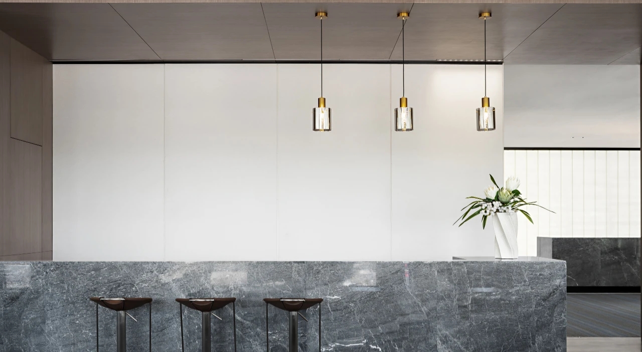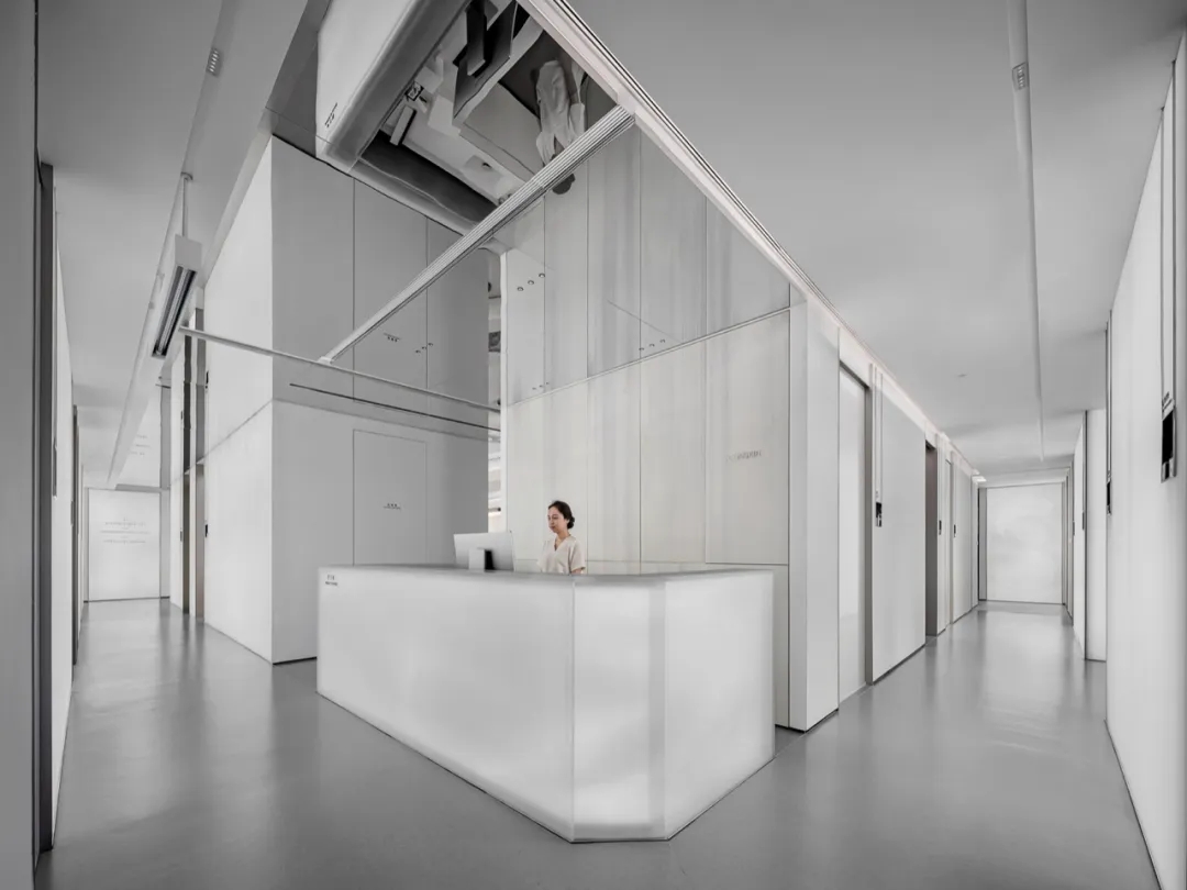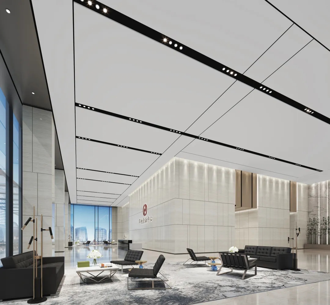 前厅接待区以干净的黑白灰为主色调,加以棕色、蓝色作为点缀,在凸显空间现代质感和精致大气之余,亦增加了空间的色彩层次和休闲格调。自由开放的空间氛围、充满艺术气质的家具和绿植配饰、舒适明亮的光线,营造出一个明快清爽、精致个性而又轻松愉悦的工作形态空间。