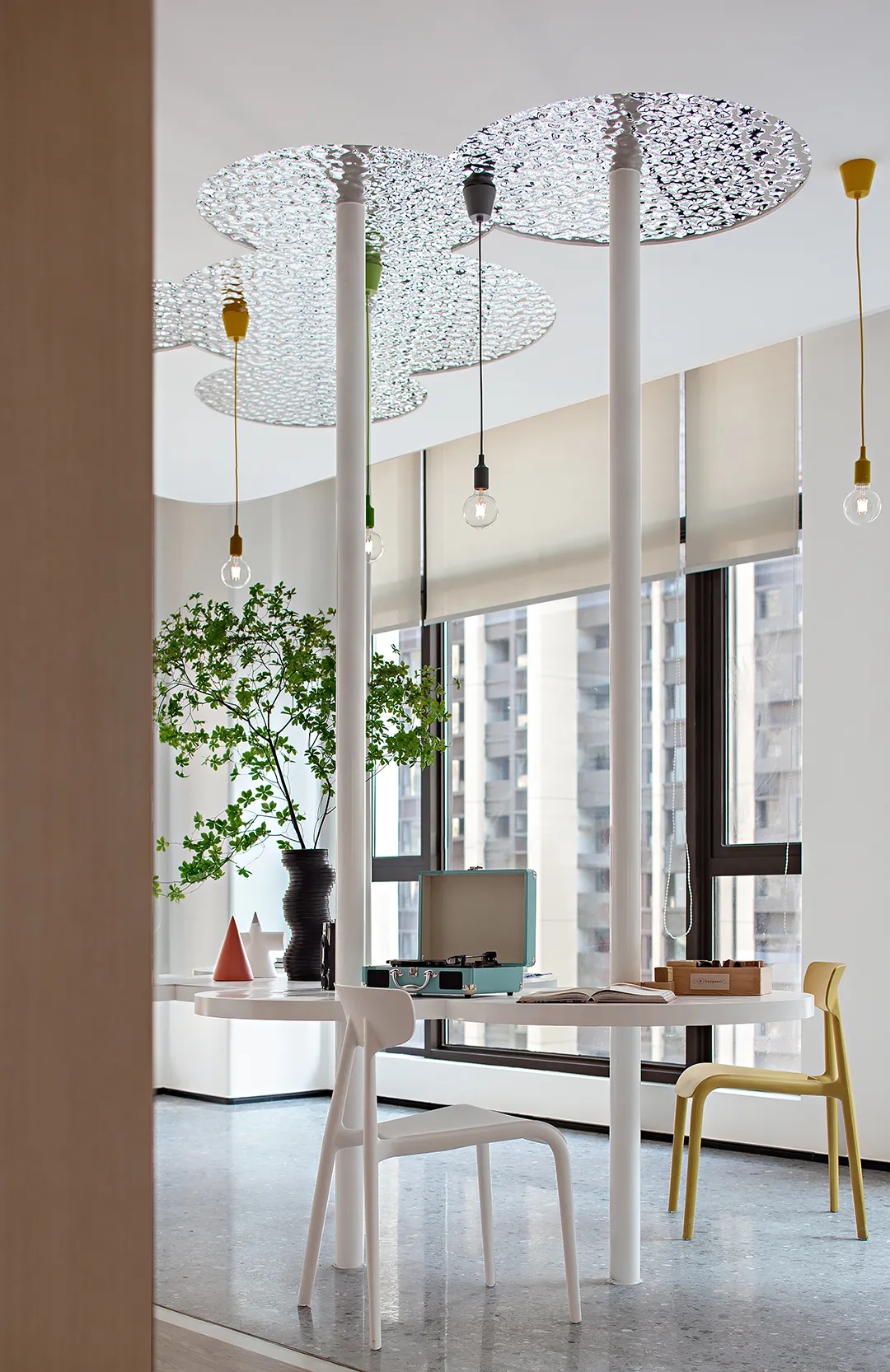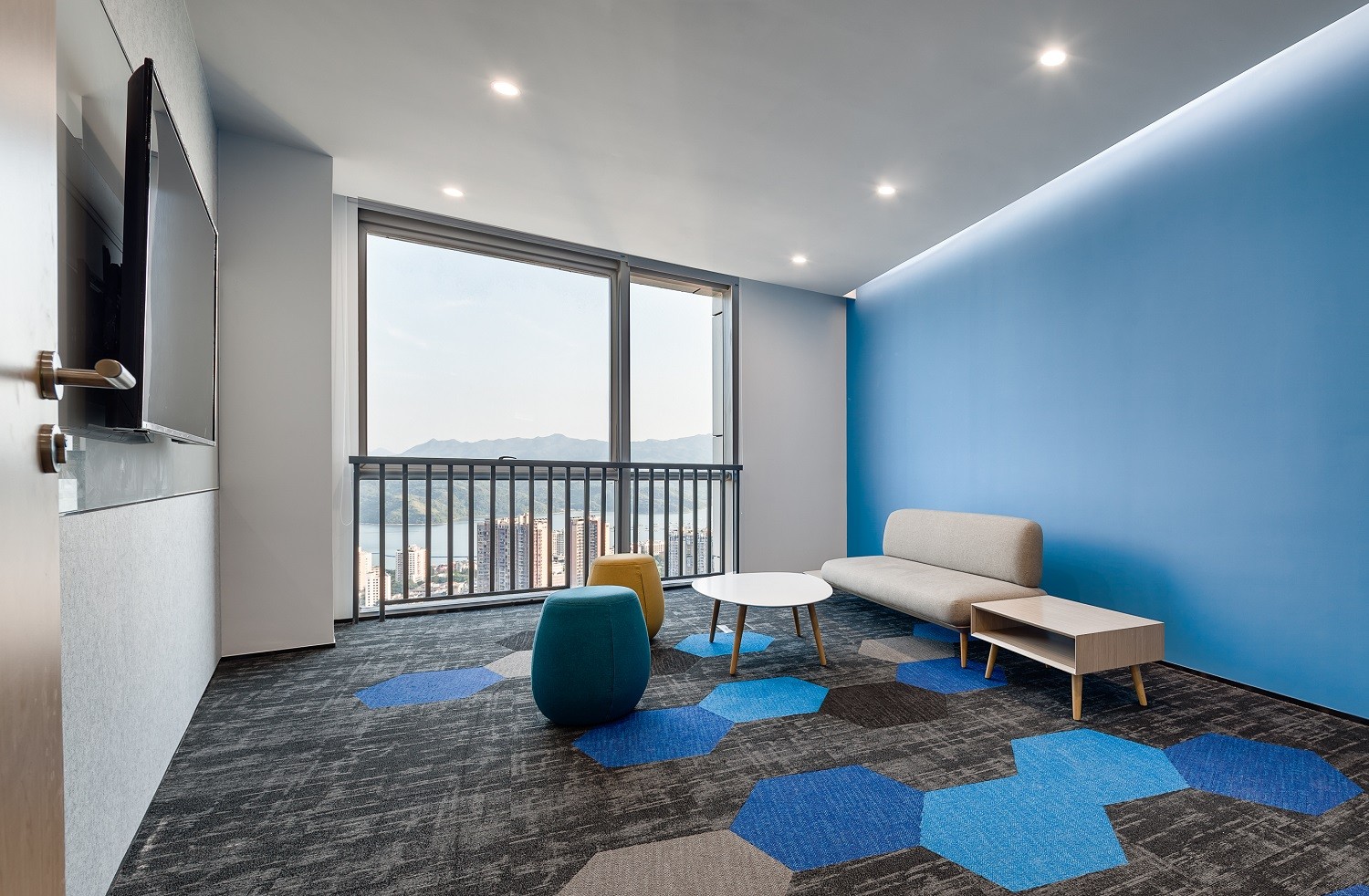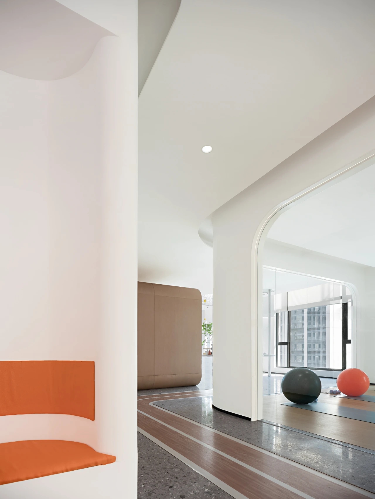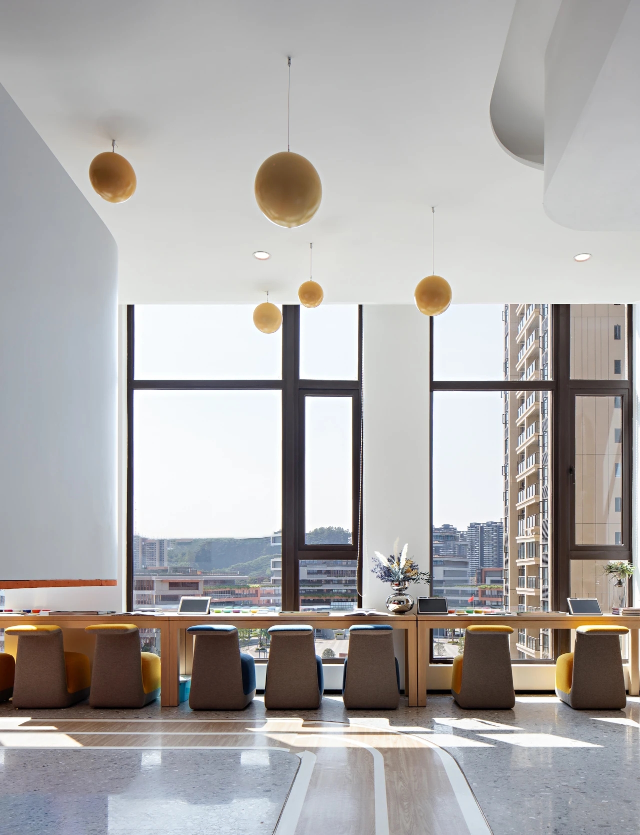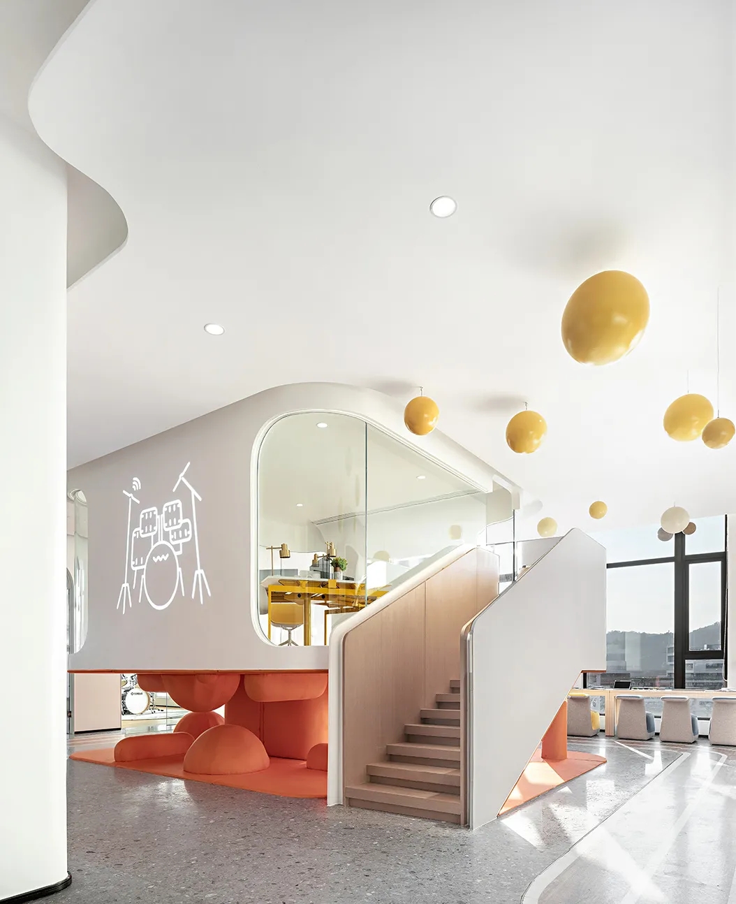设计师充分利用地面、墙面和竖向空间,以新颖的方式在教师办公室下方设置了小型活动设施,以满足孩子在不同年龄段对活动的需求,这种跳跃而有趣的空间,让成人也有去坐一坐,躺一躺的冲动,只有这样,才能更好地调动起大家学习探索的欲望,让培训中心发挥其最大效能。