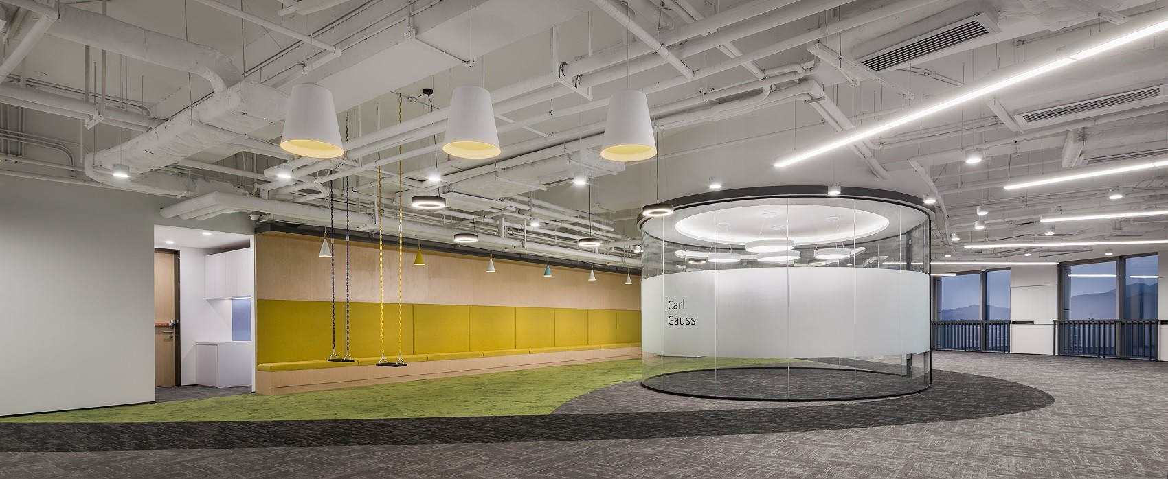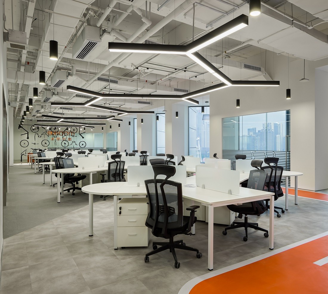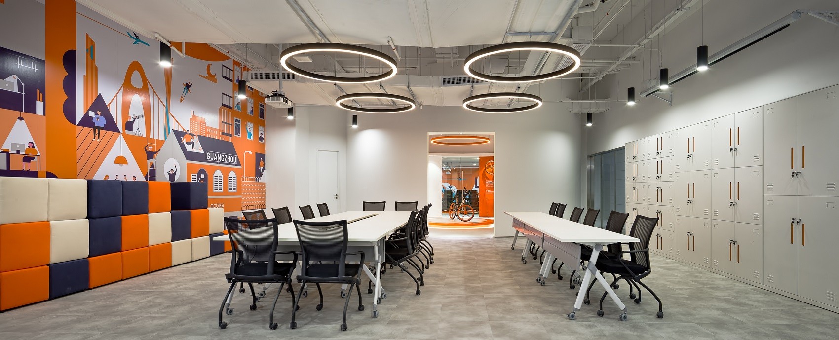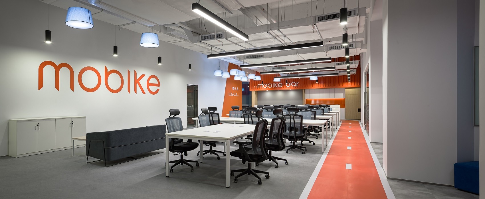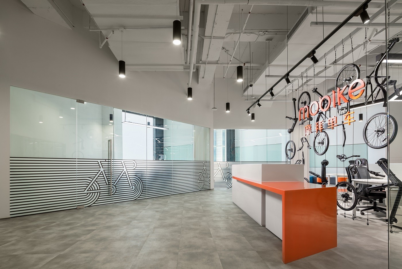 妙取灵感,建立与品牌的联结。从摩拜单车最具代表性的共享单车品牌中提取视觉元素,例如:单车的组件作为企业文化背景墙,在办公区域的过道动线也采用骑行道路作为装饰,各式各样的隔断玻璃上添加了单车的元素缓解了透明玻璃的单调感。不仅如此,就连灯饰照明也大量采用单车轮胎的圆环形灯具。通过特色鲜明的装饰设计将其融入办公空间中,巧妙地保持整体风格的统一,充分地将摩拜单车的企业形象展现出来!