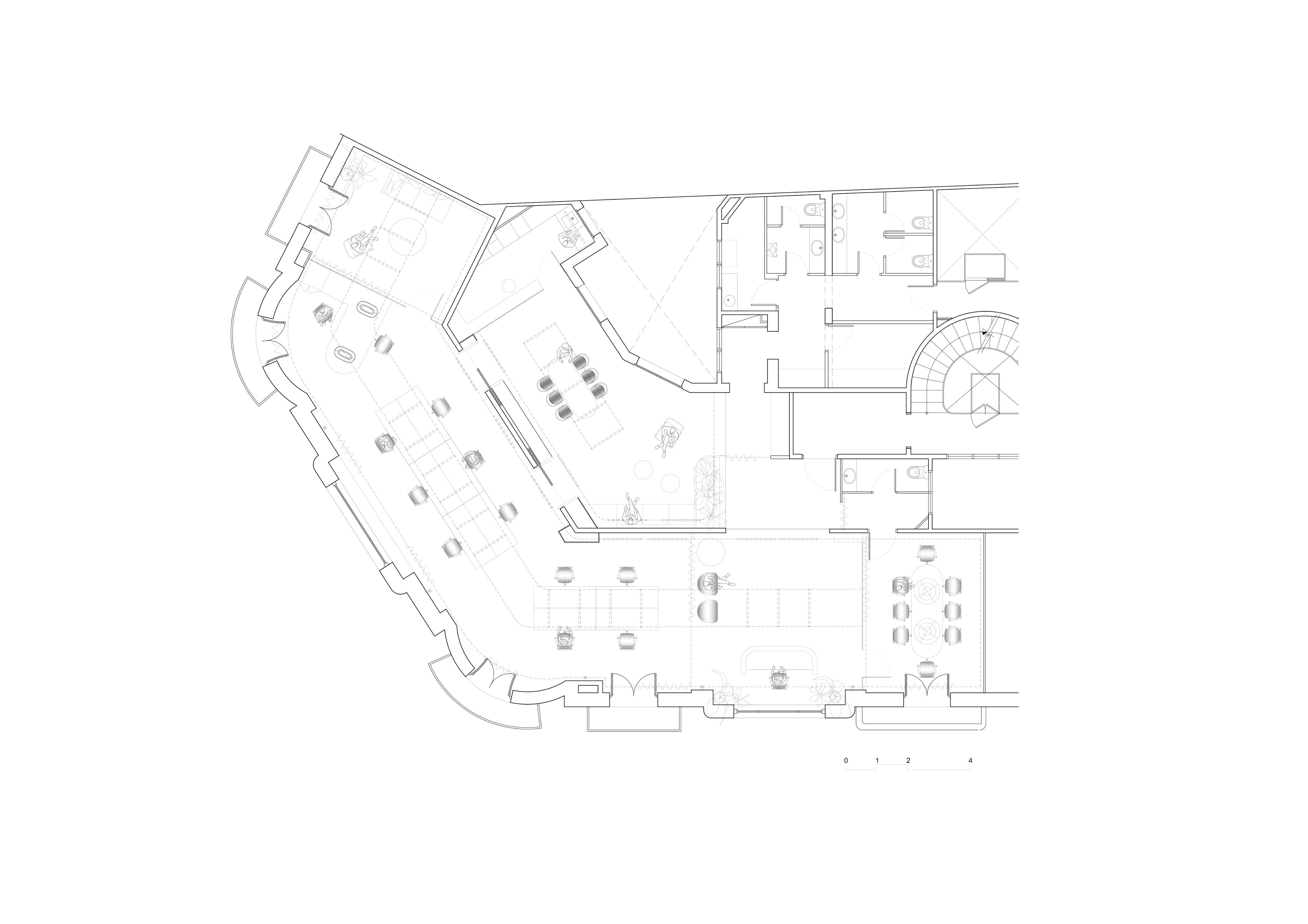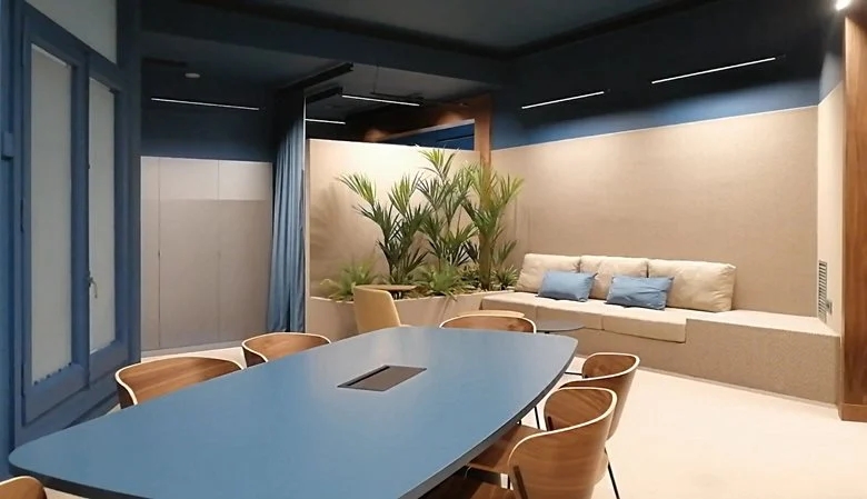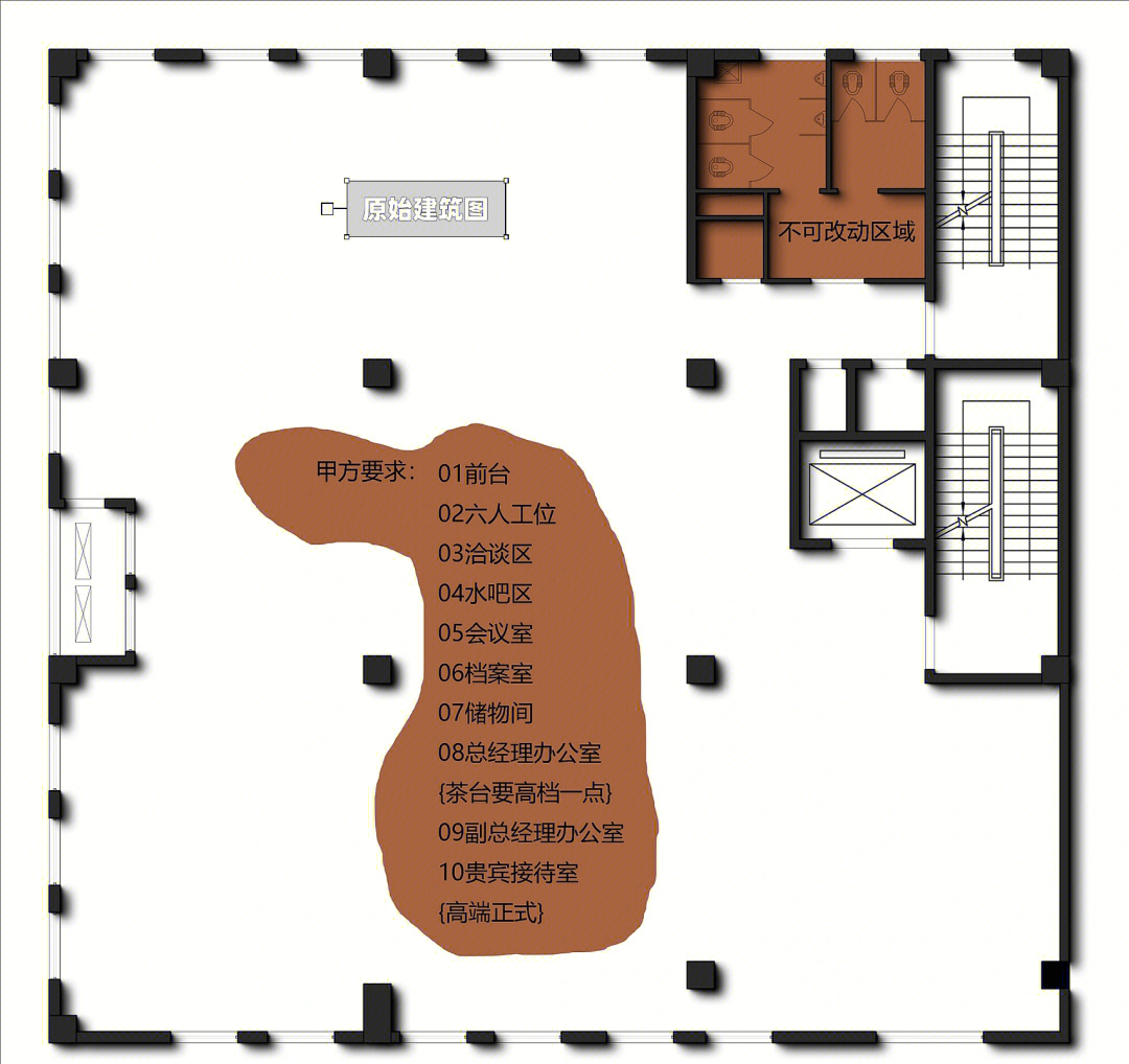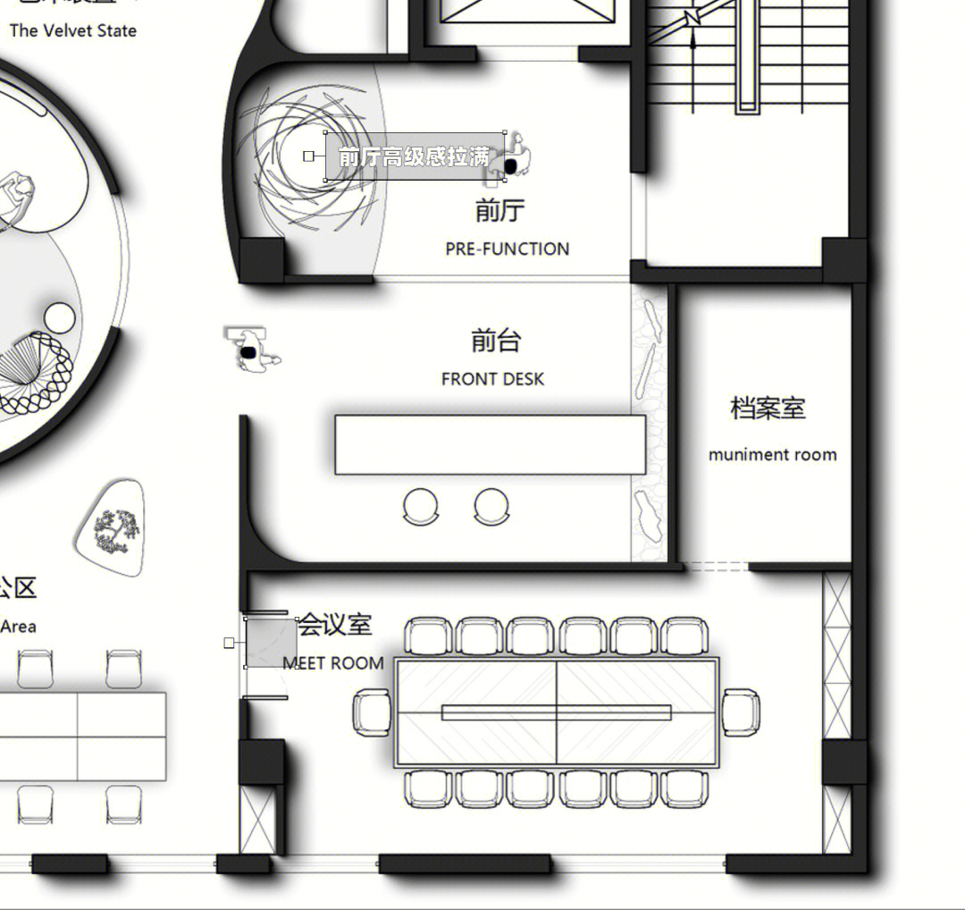 在不足250平米的使用面积上规划多功能办公环境本身就是尺寸之地,特别是设计任务中含有相当数量的开放办公位和独立办公室,要完成开始拟定的设计目标只在平面和立面上体现,显然是不足以的,于是我们把设计的核心转移到了天花。