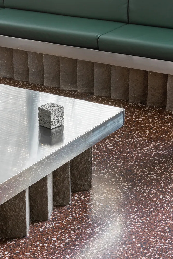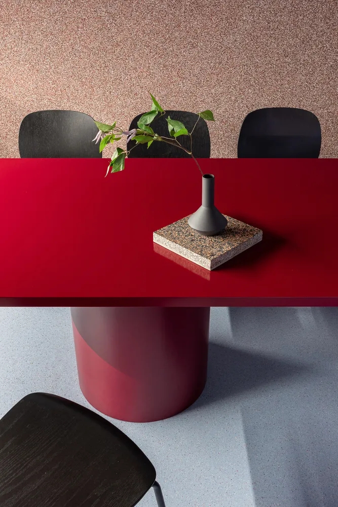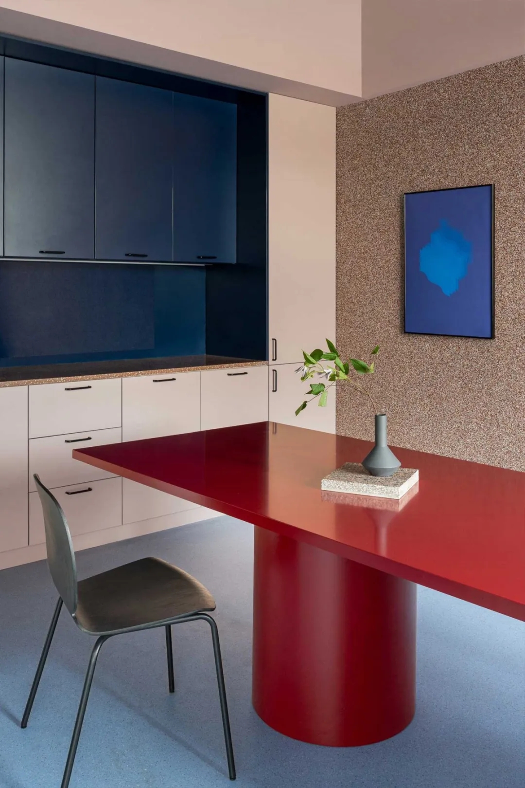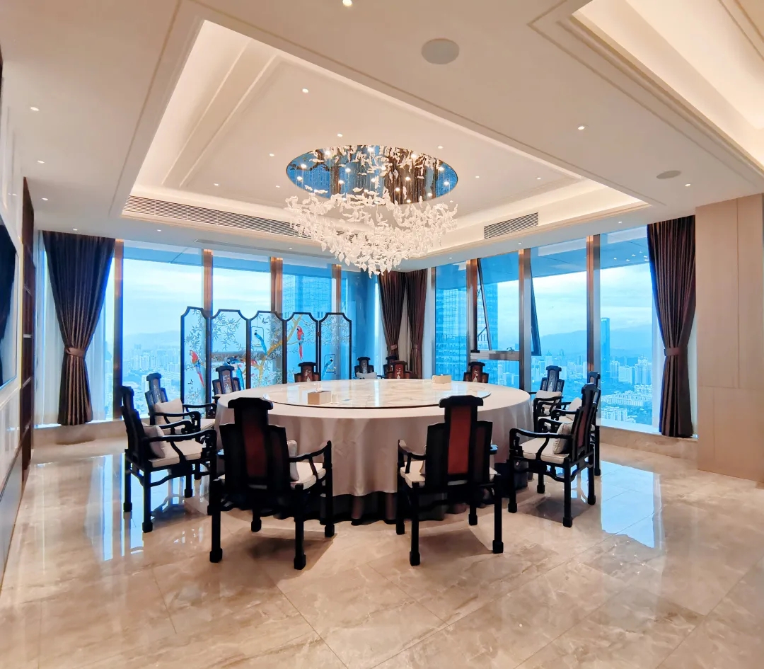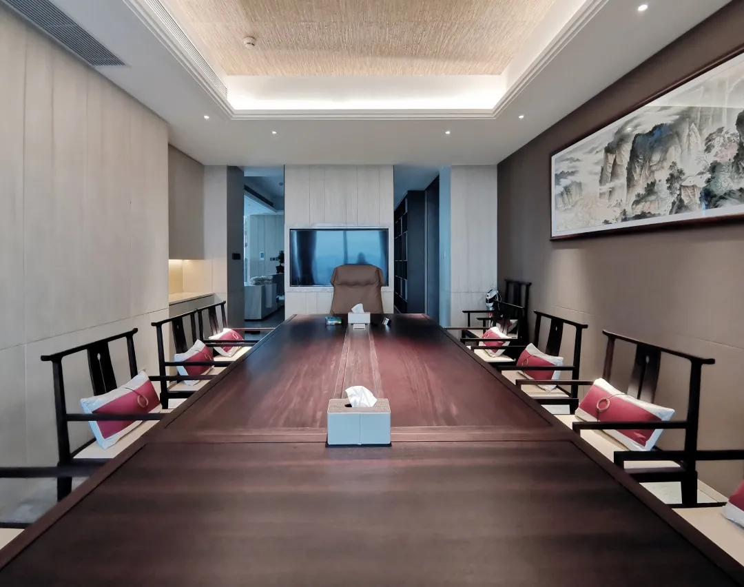 此次设计的办公室位于顶部两层。为充分体现建业的建筑成就,联图将整个圆形办公室设想为一个展览空间,用于展示建业的建筑模型、设计工具、材料样本、家具,以及建筑图纸。内嵌式木架包围中央圆形核心结构,隔出了会议室、办公室和茶水间,通过美术馆式的陈设,让建筑元素点缀整个空间。嵌入式结构不仅有助于激发面对面的交流与讨论,也能展示设计的过程和设计构思的成型。