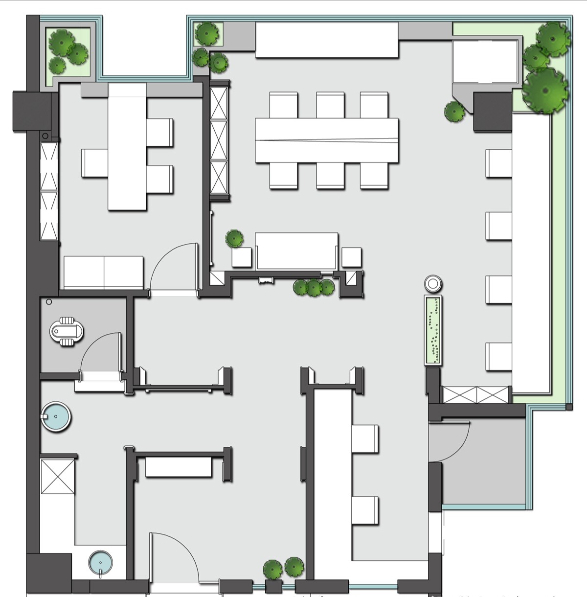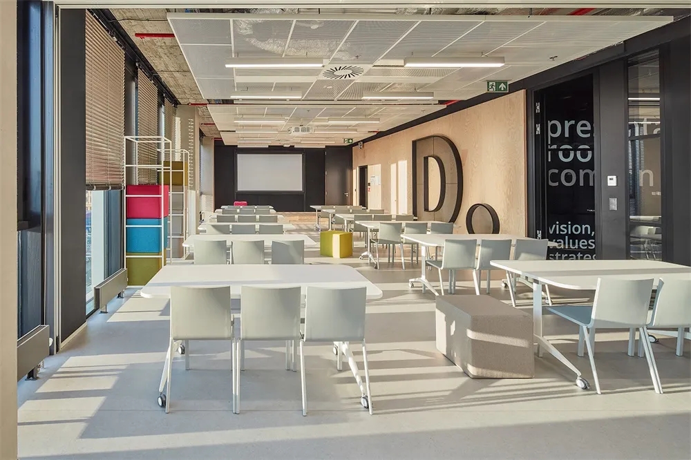 对于德勤来说,联合办公区是一个全新的元素,它可以满足公司在项目和演示方面的所有需求。共同工作空间的设计为内部和外部项目提供了最大的空间可变性。室内的主要元素之一是一个特别设计的螺旋楼梯,通过它,一层与中庭和入口大厅与联合工作层相连。