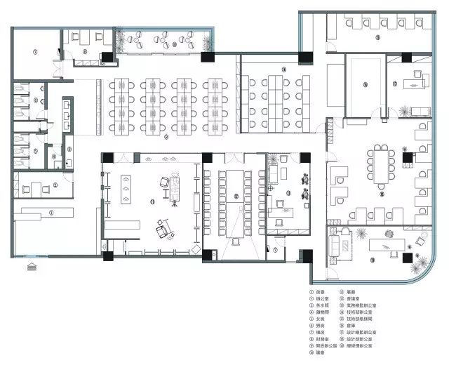 方案远离传统的网格式布局,将员工的个性化需求放在首位,形式灵活可变,空间框架明朗,但界限模糊,可跟随需求变换用途。
