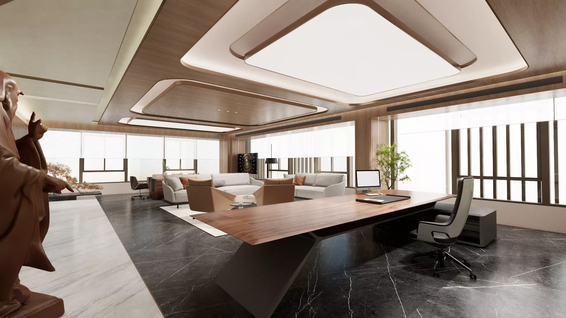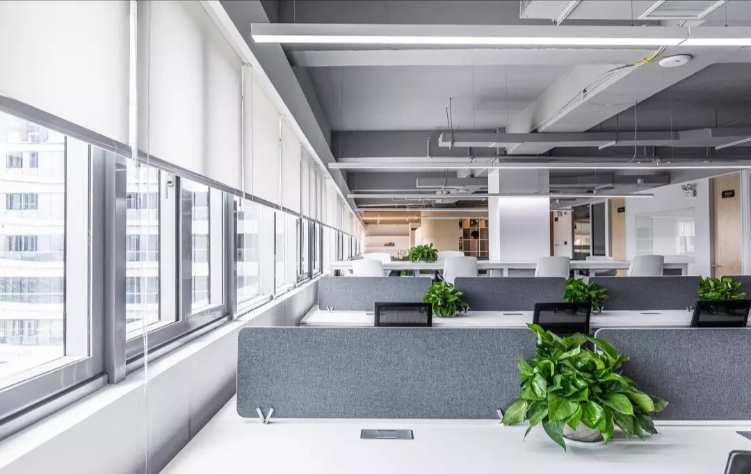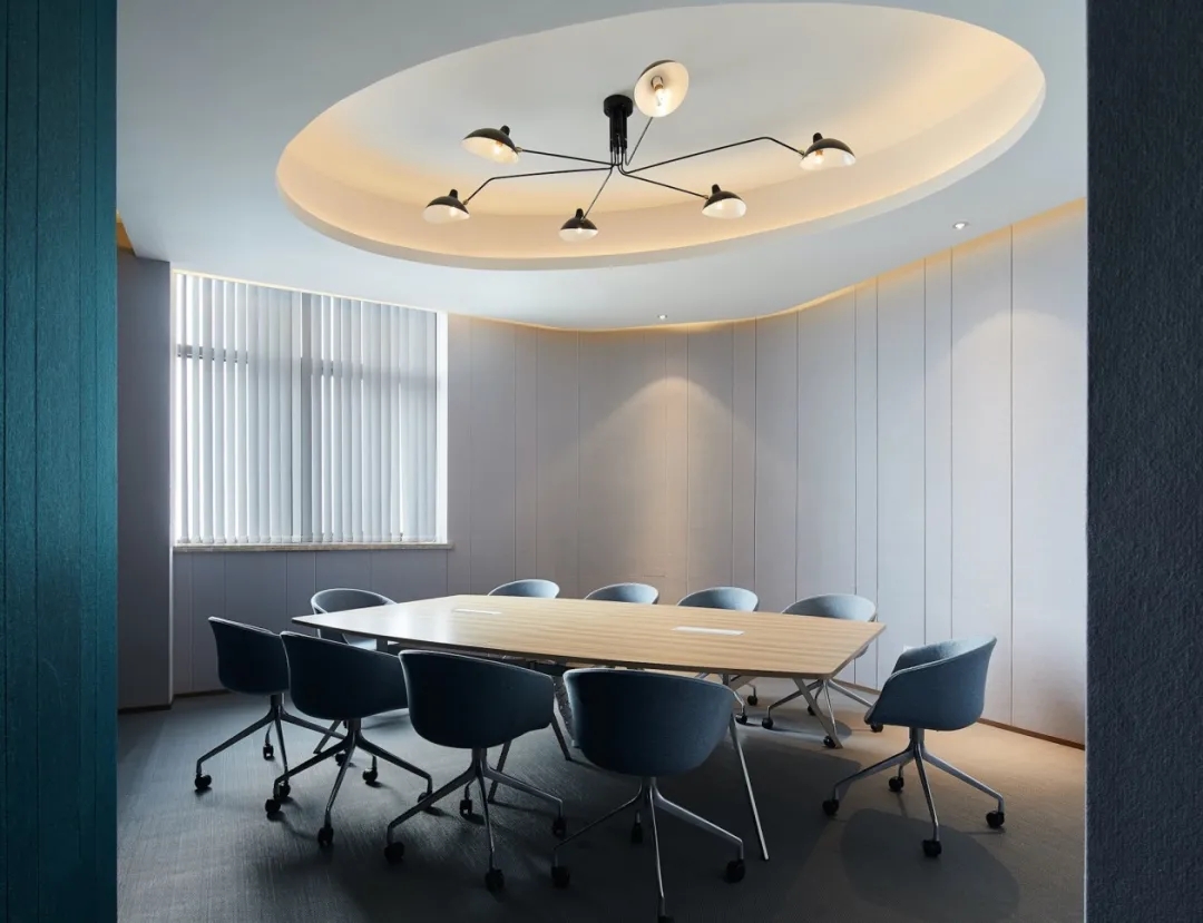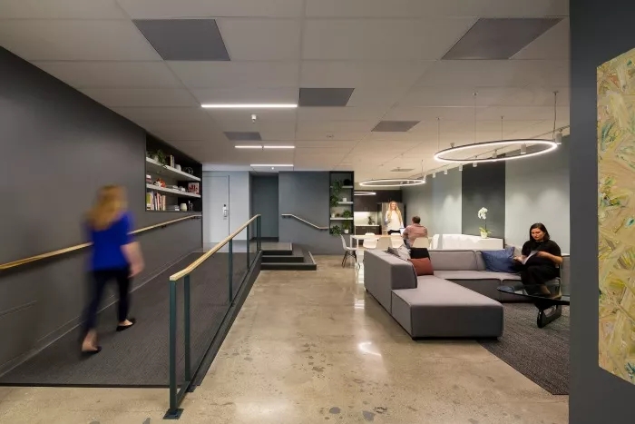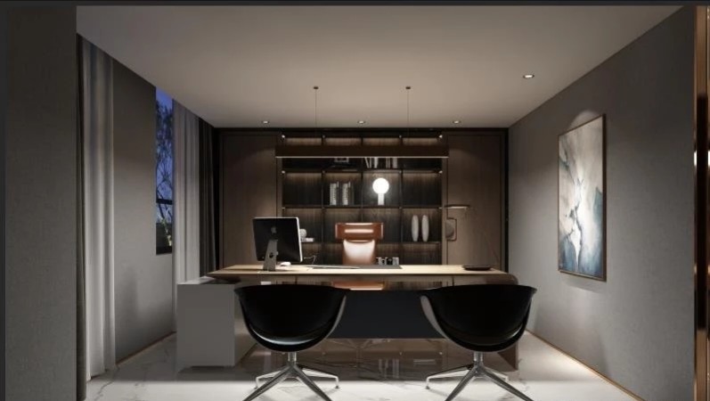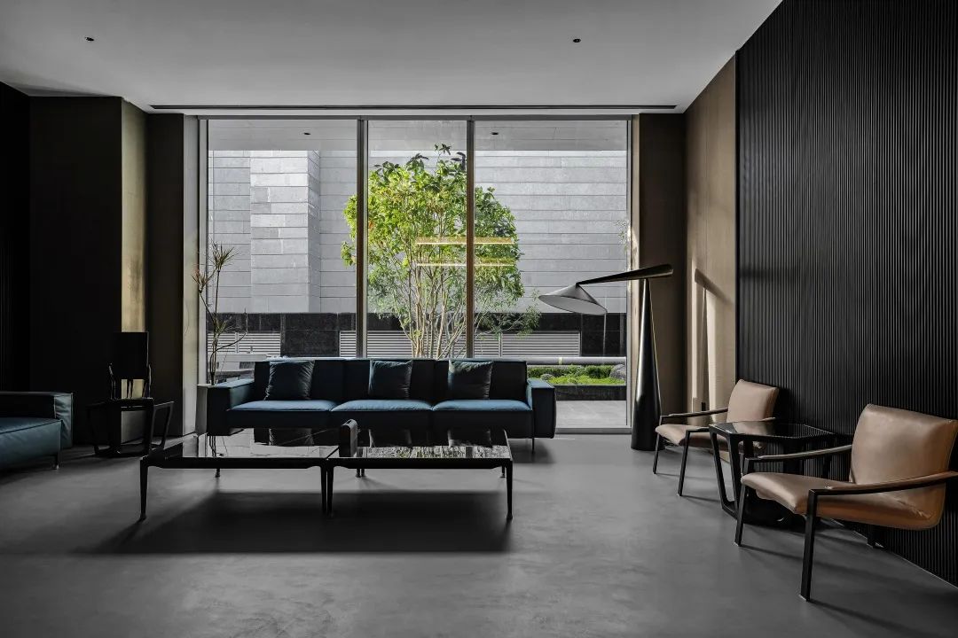 入口大厅体现一种灵活多变的时尚现代的气息,形成一种隔而不断的开放式共享空间。入口处虚实对比的隔断更能凸显企业既沉稳又包容的企业姿态。