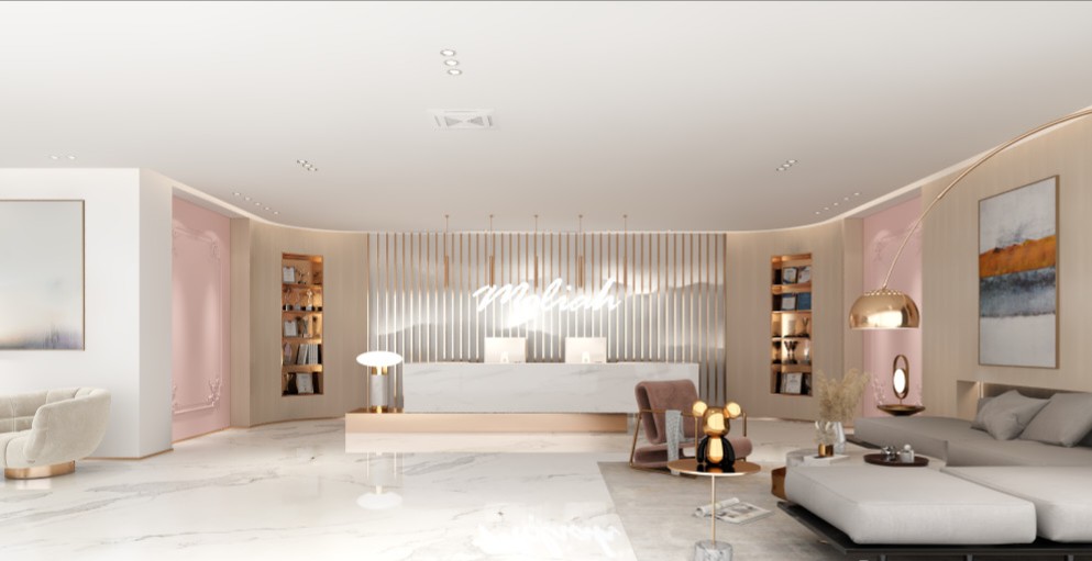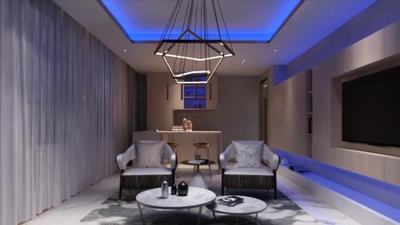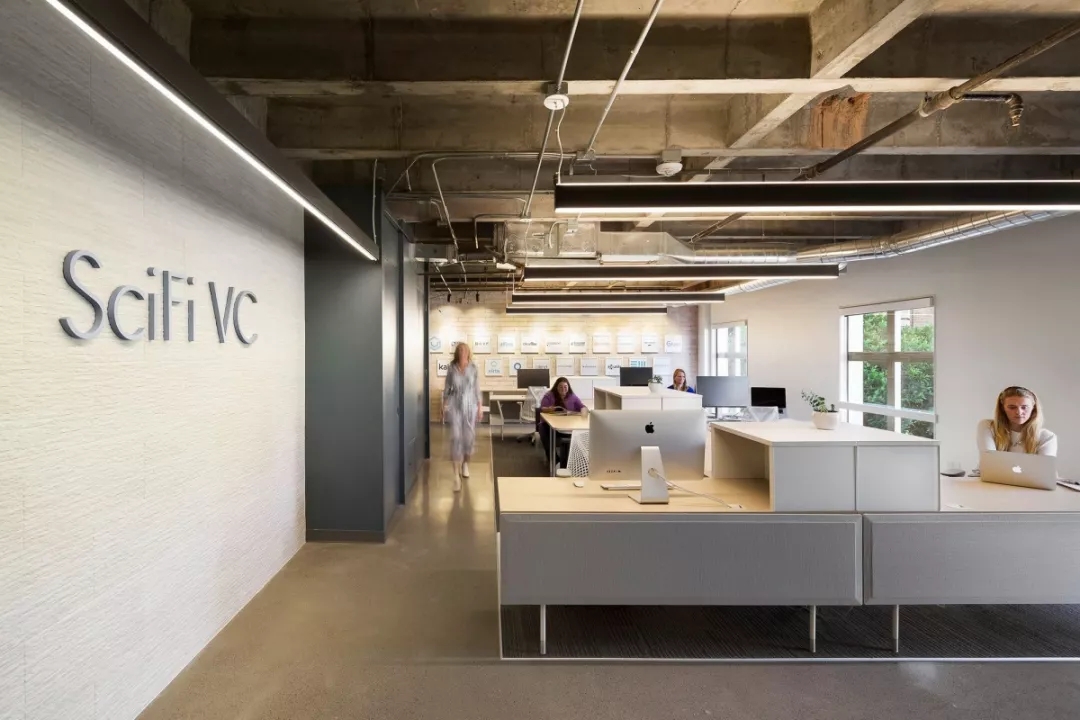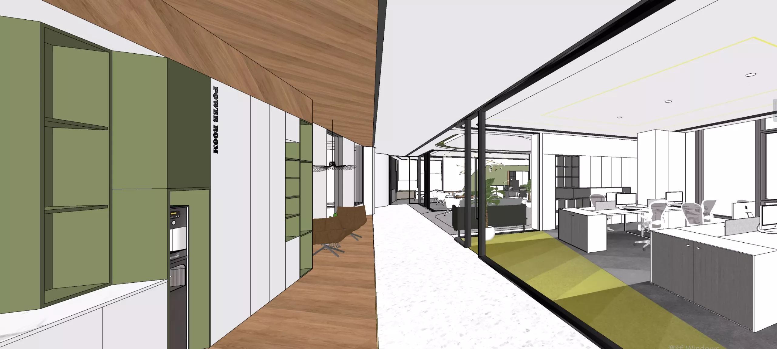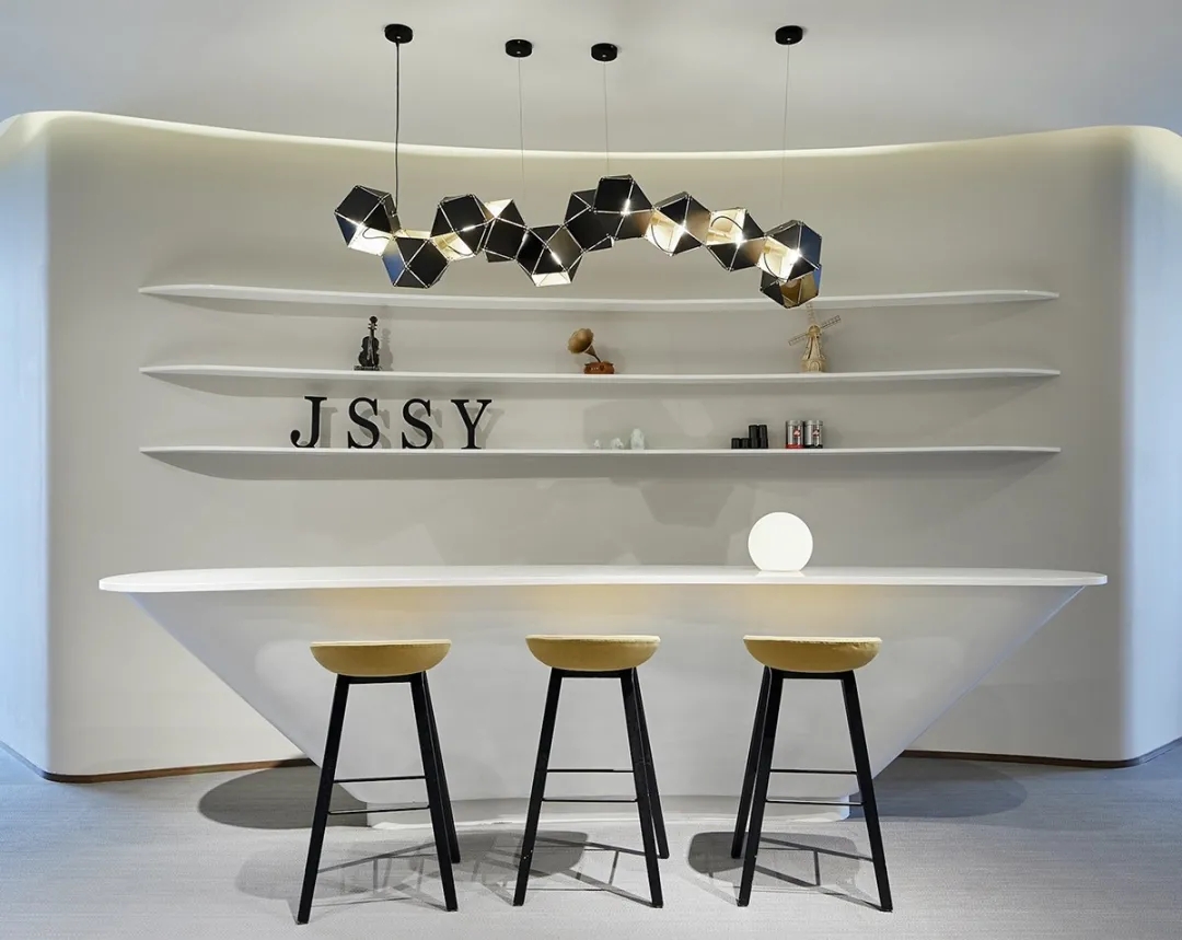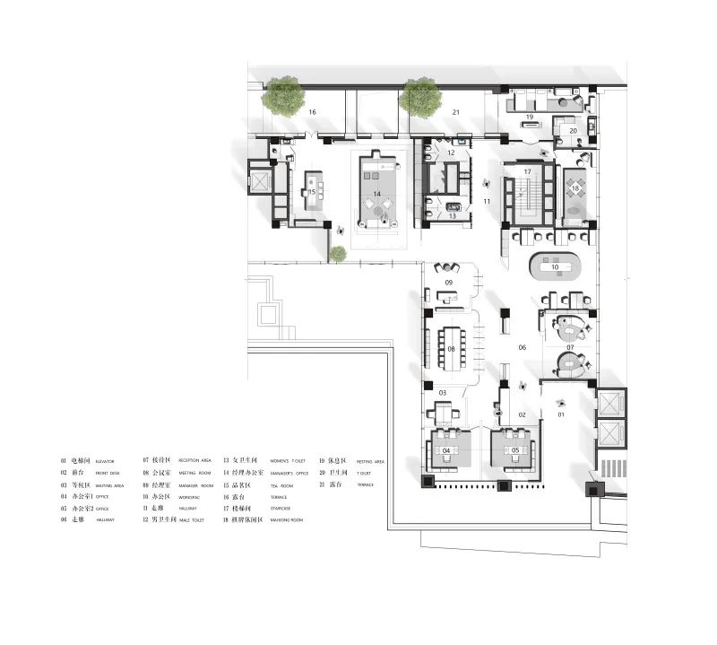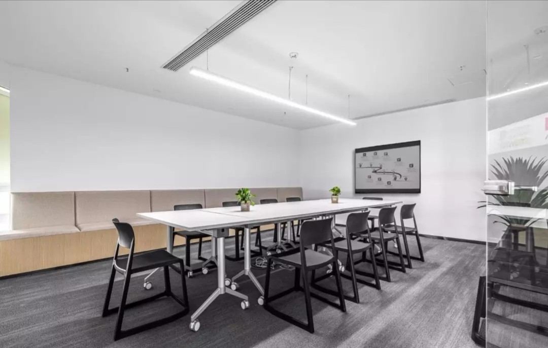 入口大厅体现一种灵活多变的时尚现代的气息,形成一种隔而不断的开放式共享空间。入口处虚实对比的隔断更能凸显企业既沉稳又包容的企业姿态。