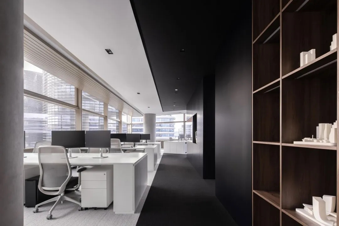 希望办公空间不是枯燥伏案的场所,而是一个以多样化场景构成的可持续空间。这个’黑白容器’是设计师为自己重新定义的办公空间,在黑白的底色之上,将所需的辅助功能和分隔墙体同化,空间从而显现出一种可感知的秩序感和流动性,辅以可自由转换的空间场景,新的故事和未来的畅想在这里不断生长。