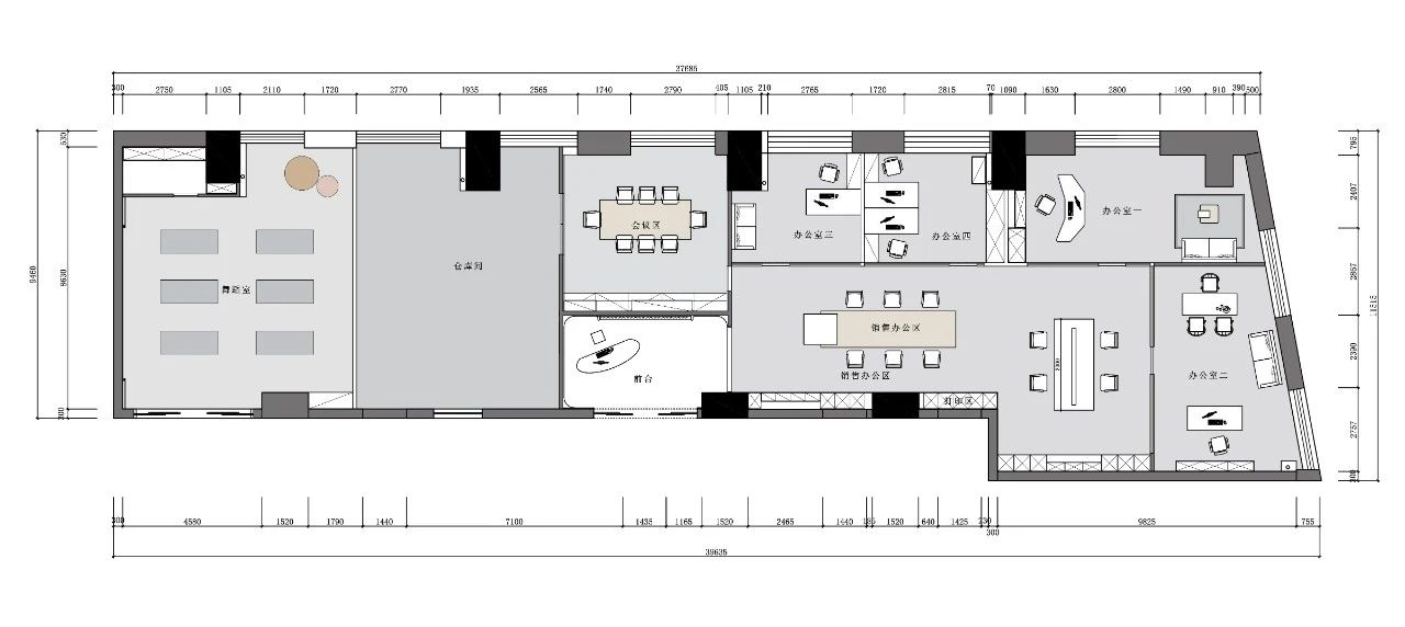 舍弃传统呆板的办公室设计没有四四方方像城墙般的间隔,没有以白色灯光为主调取而代之,以家居的感觉和多元化情境塑造,让员工在这里找到归属感,更以不同区域的主题规划设计,创造出一种空间游览的趣味。由入口处旋踵往右,穿过迂回的走廊,规划出会客洽谈区别于一般的会客及洽谈空间以开放式的编排原则,设计出整个空间体验。