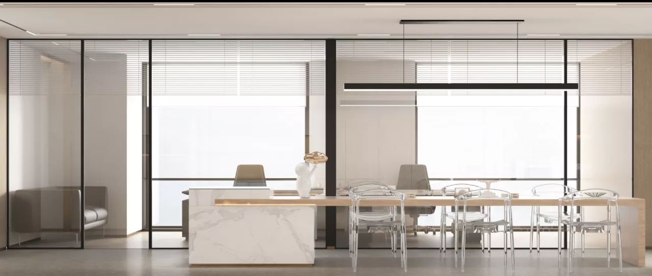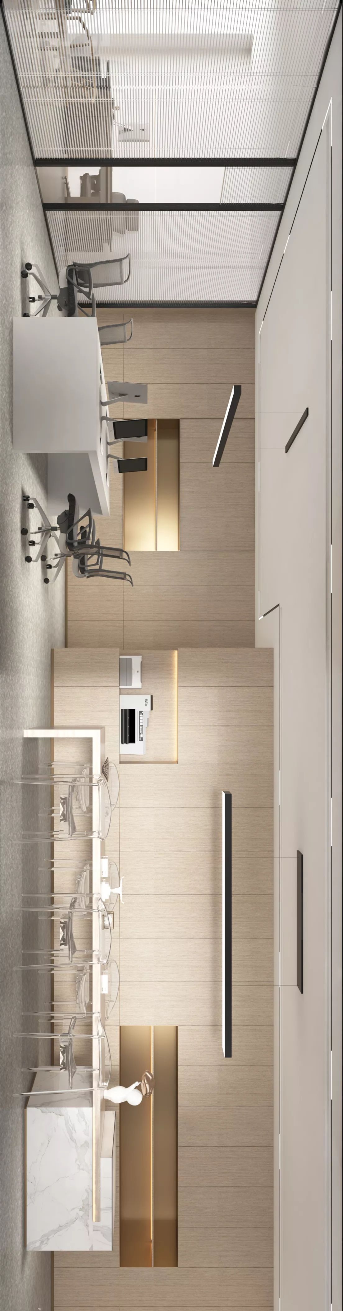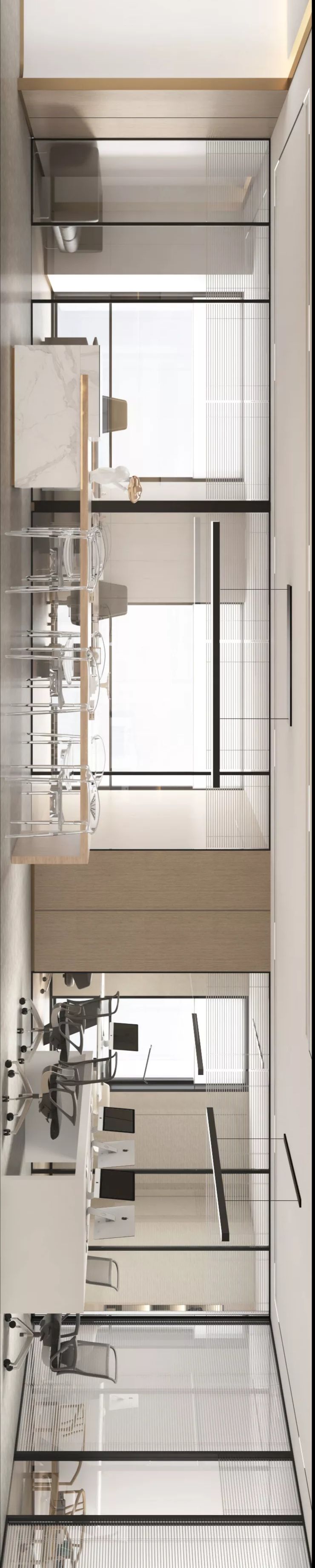 走进工作空间,顿时进入一个以白色为主调的环境,使用白色条形几何作天花板的装饰,整齐有序。线性灯带让过道纵深感更强,让视觉继续两边延伸,让空间显得更加宽阔。累了倦了可以来休闲吧小坐,醇香咖啡甚至精酿啤酒来上一口,也许就是灵感爆发的契机,简约而不简单的工作环境让办公成为一种享受...