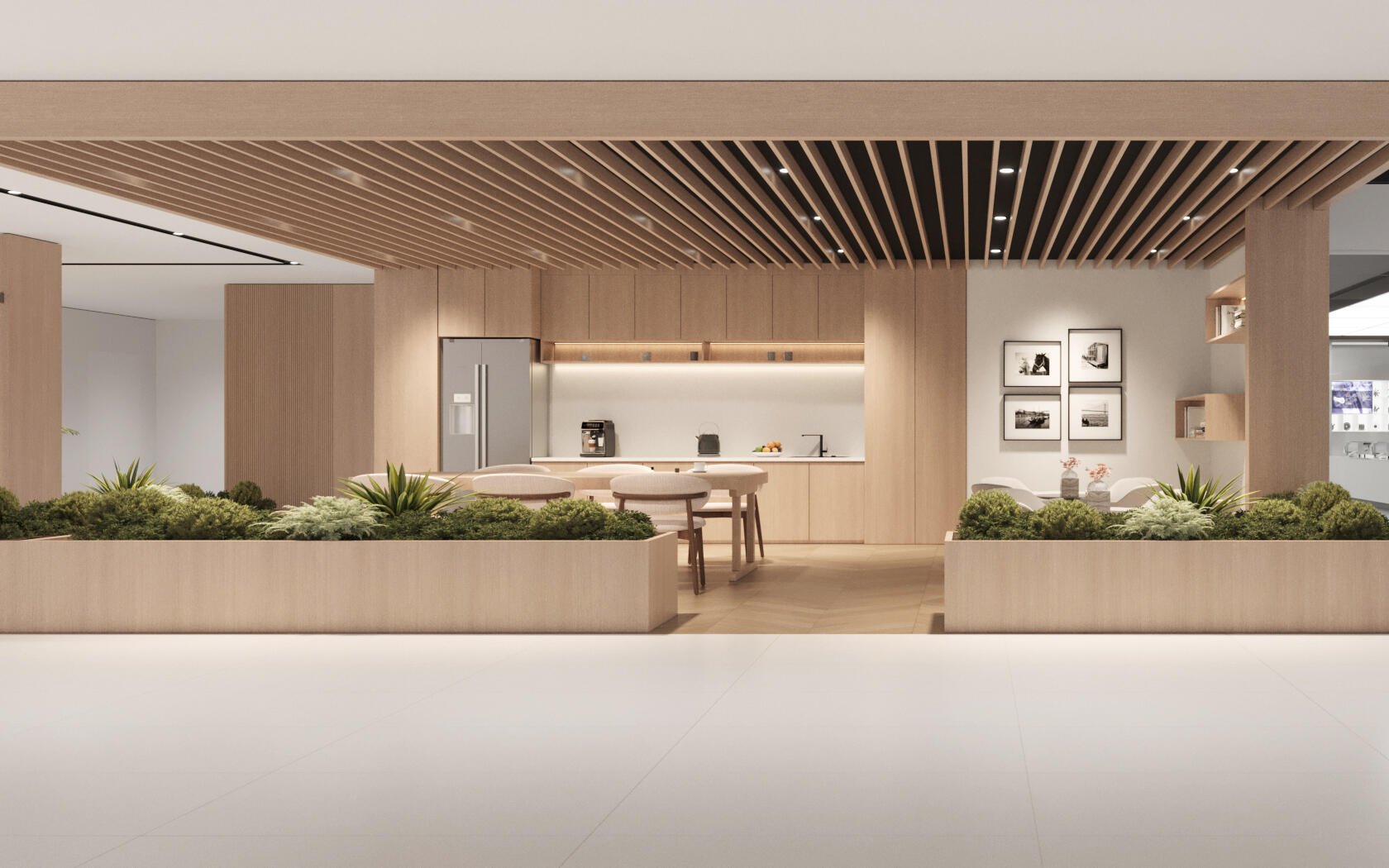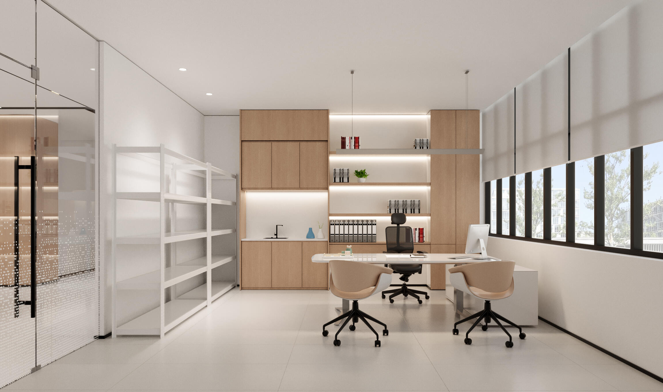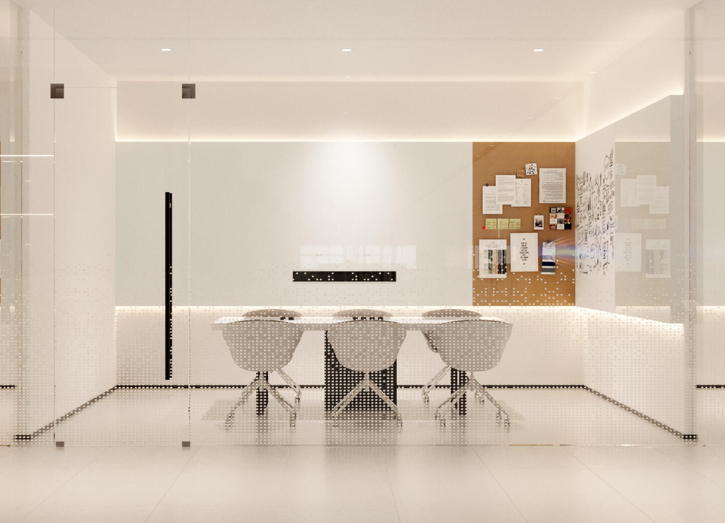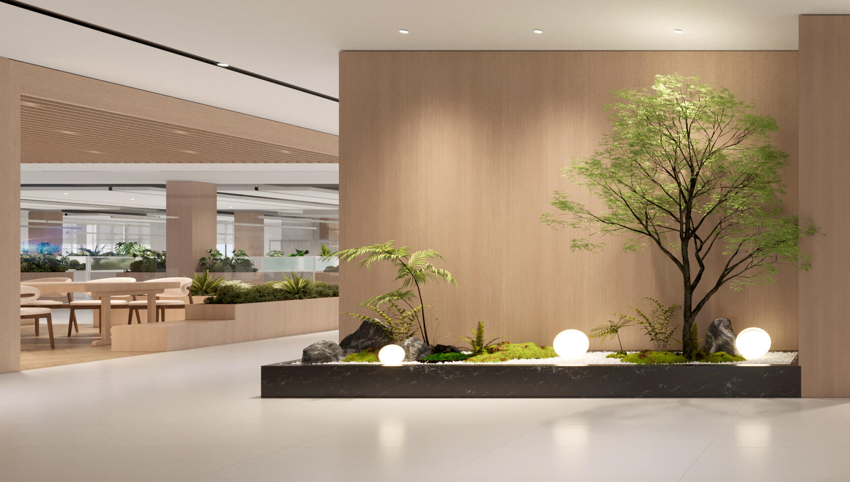 项目设计灵感来自“权衡”。权衡取其平,平者乃公道之谓也。称重量的器物,名曰衡器,衡为杆,权为砣。黑色条形石材台如秤杆横跨接待区,连接Logo墙。前台绿大理石象征石权。石权,俗称秤砣,是古代讼师追求法治公正的标志。方格天花造型,漫反射灯光均匀而和谐。整体设计体现空间的正气和秩序感。