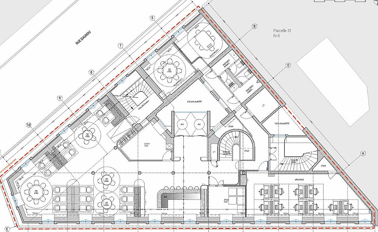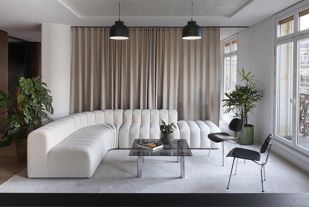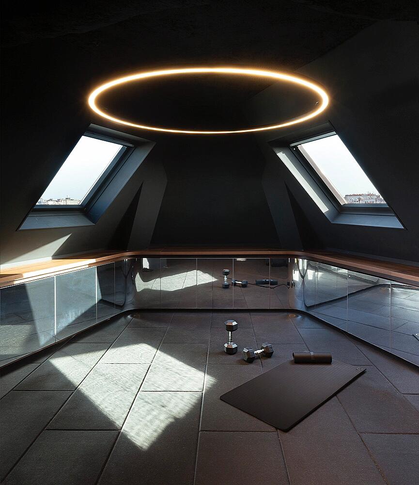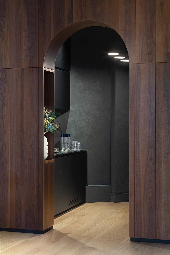 通过尽可能少使用新材料和结合二手家具来减少项目对环境的影响。庆祝现有建筑的结构,混凝土和水磨石的地板被抛光,以创建如新的表面,而结构梁和服务设施则在漆过的混凝土天花板上清晰可见。在工作室的聚会墙上,来自过去居民的油漆和墙纸拼贴为模特和钉子提供了背景。新材料包括核心周围的纹理混凝土墙和漂浮木箱,用于划定空间。