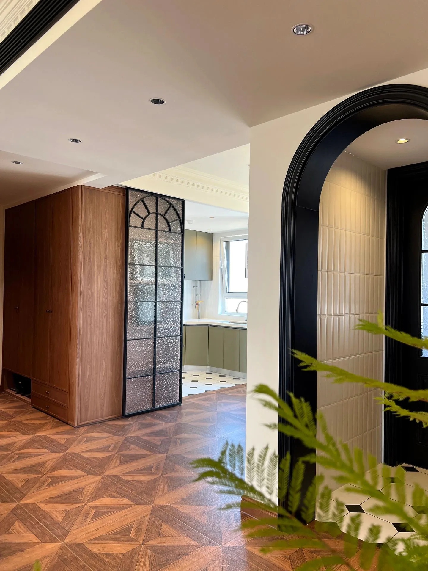 4,木工阶段提前选好电视,确定内嵌开孔尺寸,开孔尺寸要大于电视尺寸,内嵌厚度也要计算电视厚度+支架厚度,否则电视凸出来就翻车了