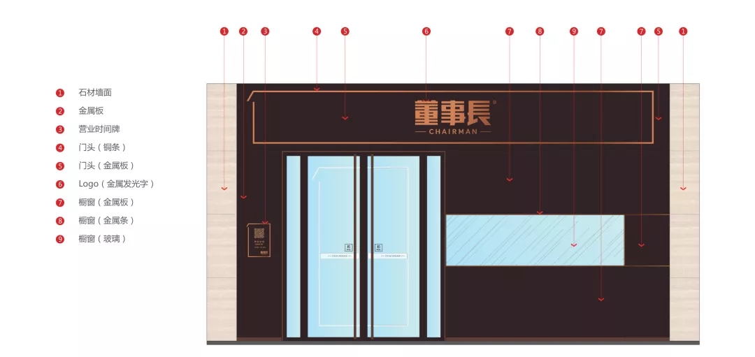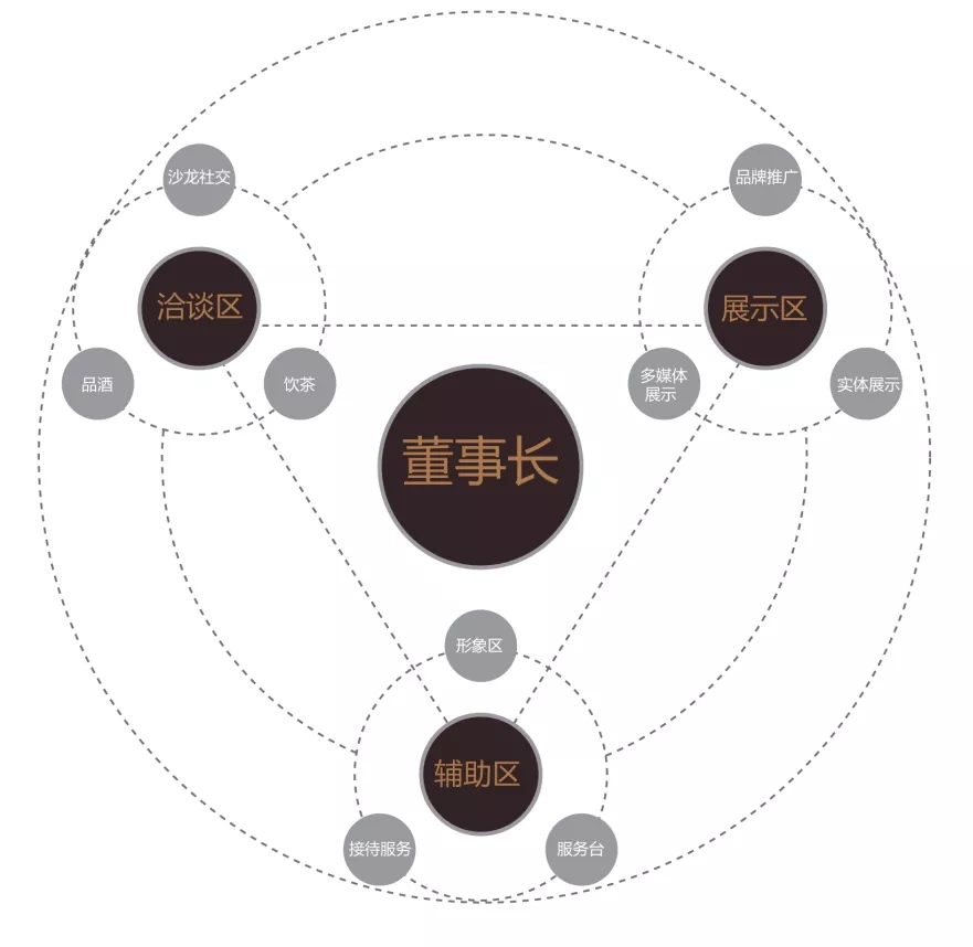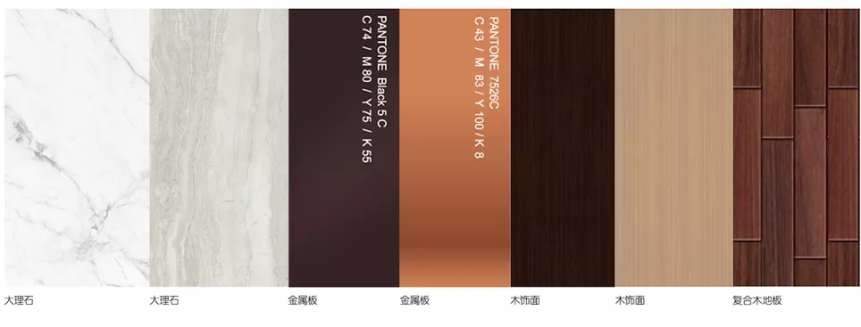 不同的功能区间由材质,色彩和纹理的材质区分,公共走廊引领顾客穿梭在其中,感受不同空间的开放与围合。一些黄色的运用来自于高尔夫俱乐部品牌的标志色,将其穿插在用于环绕私密VIP空间的自然纹理的木制条纹墙中。除此之外,该项目的设计元素还包括木和大理石地面;棕色金属板用于构造出工业风的室内门窗系统;悬浮的接待台像一个浮臂欢迎顾客的到来;社交休息区和户外露台;以及高尔夫开放打位。