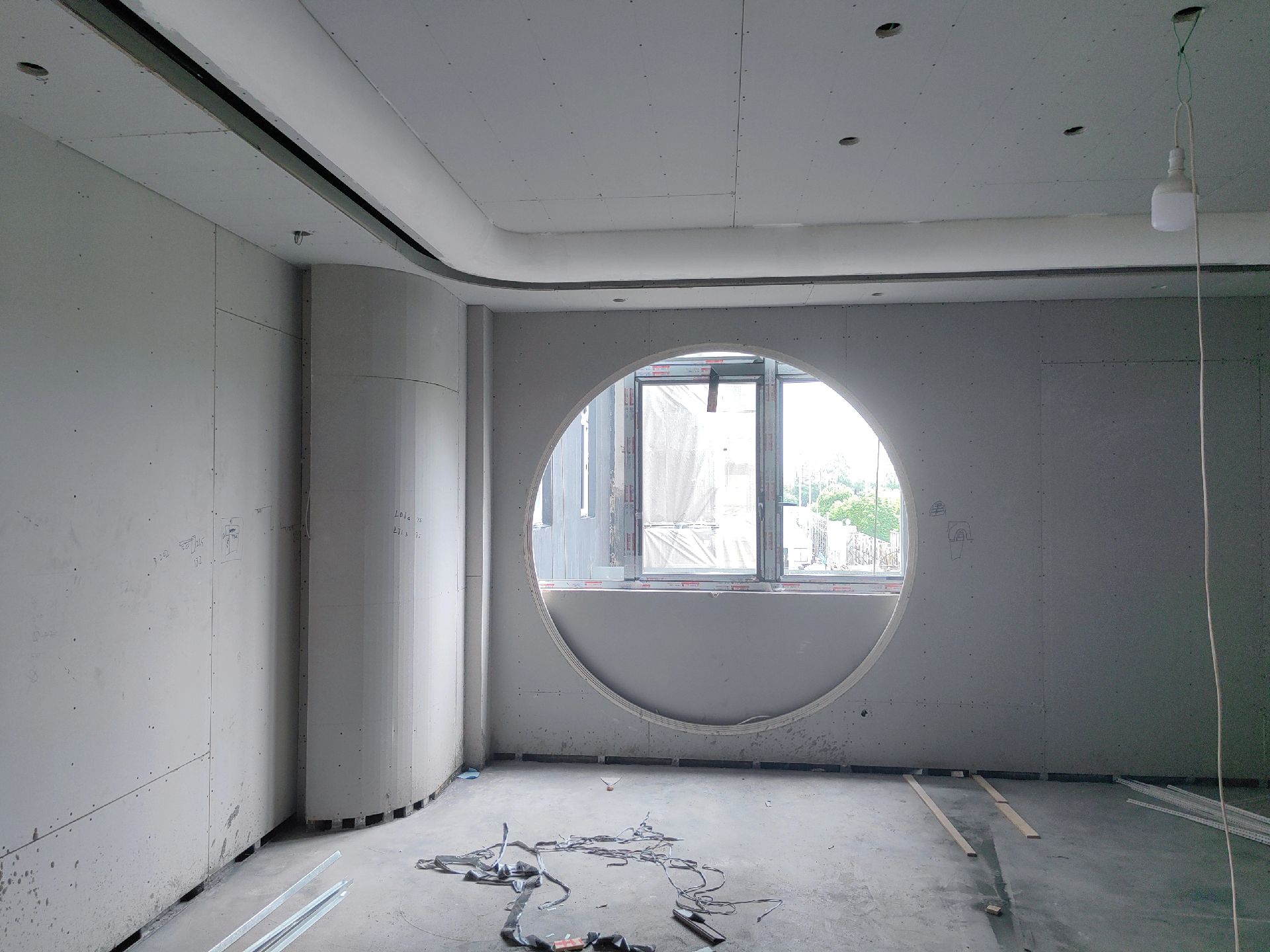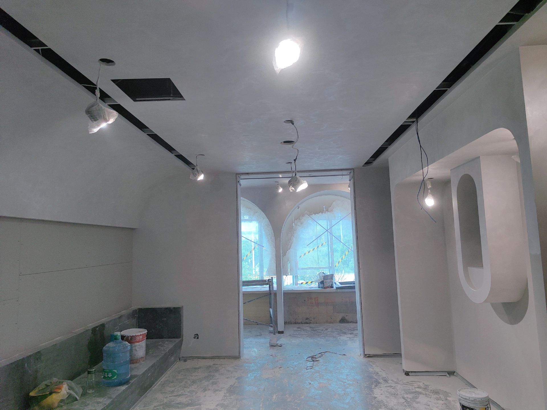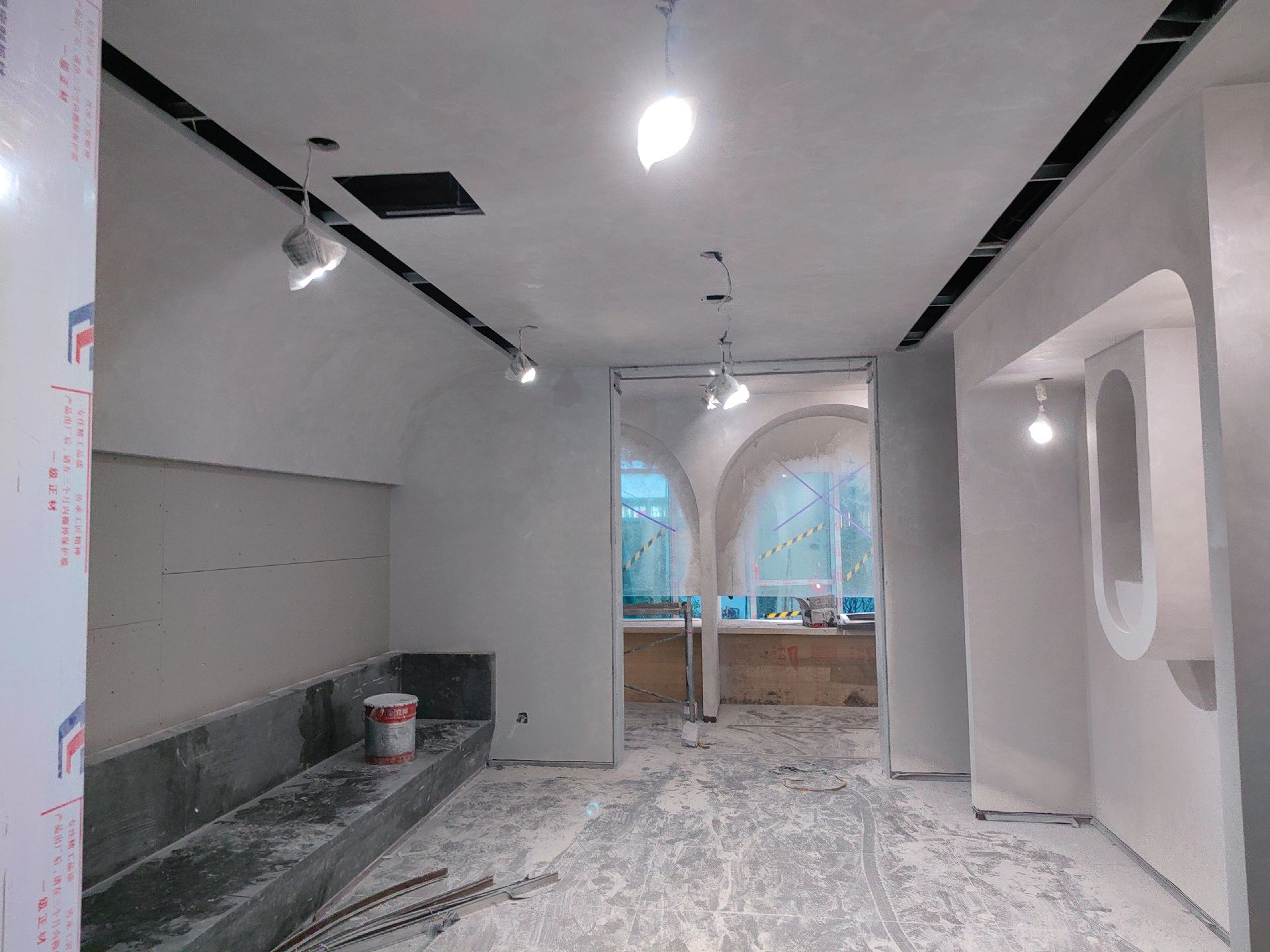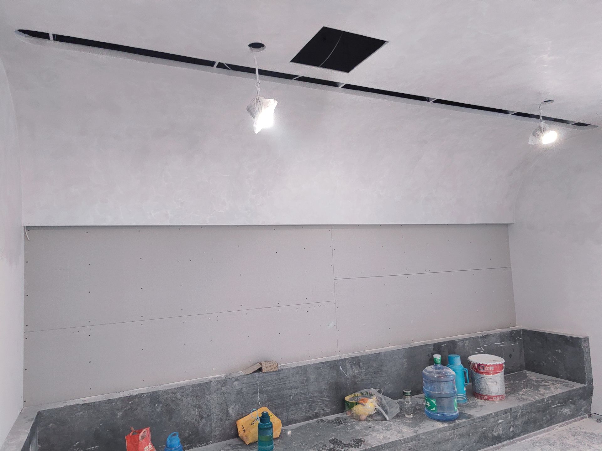 一些现场天花小细节分享给大家上天花乳胶漆,下天花木饰面,两种材质的结合让空间更加有层次感,3000k隐藏灯带,见光不见灯,从视觉上提升层高,营造高级的格调与氛围城池梁位天花湾弧,基层木作的拼接挂防裂网,批灰成一体。加长空调回风口,需要提前规划下天花的位置用来隐藏空调,这两者都特别考验木工师傅的手艺,给我们的工人师傅点赞