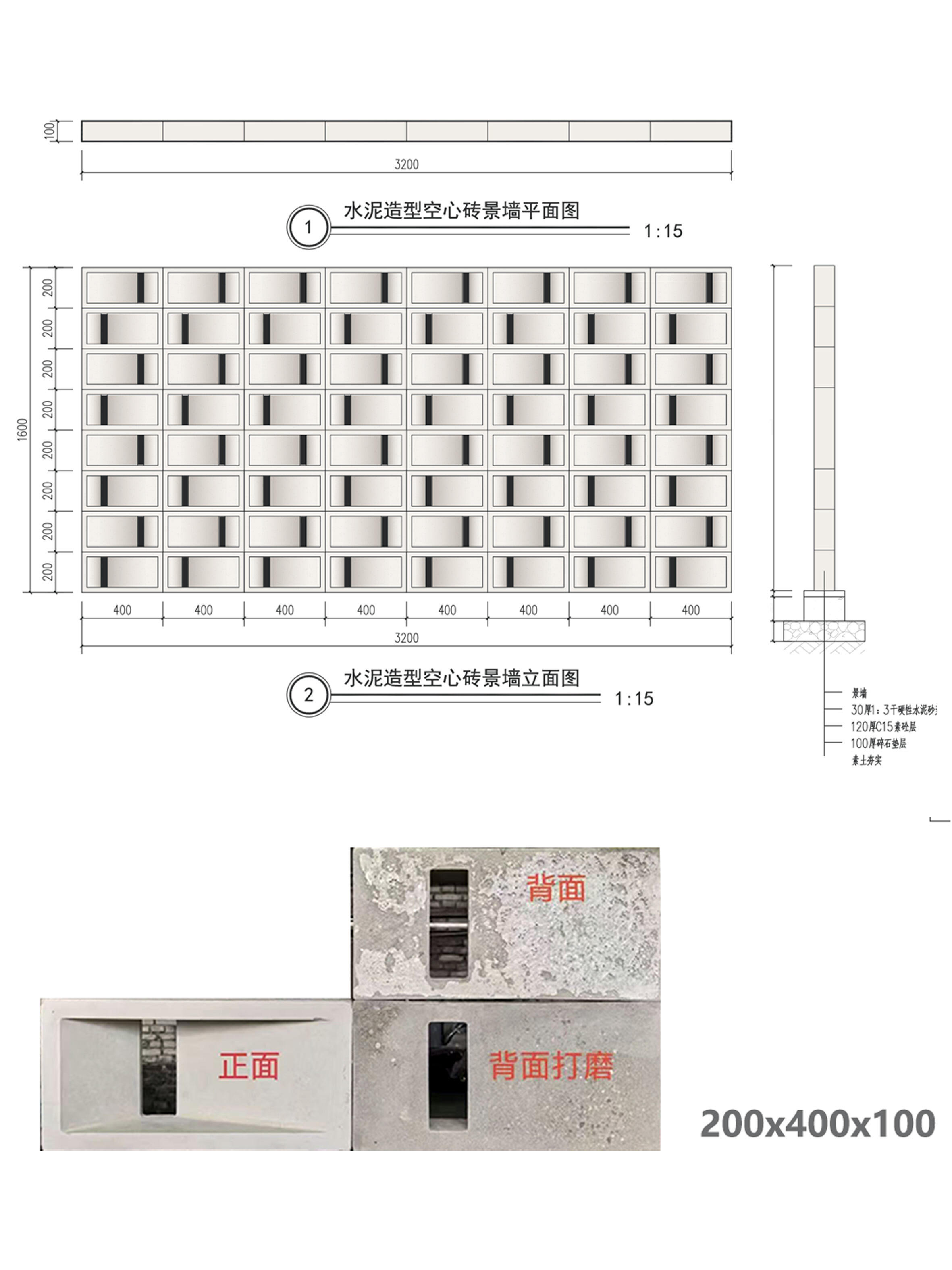 水泥造型空心砖景墙立面图
