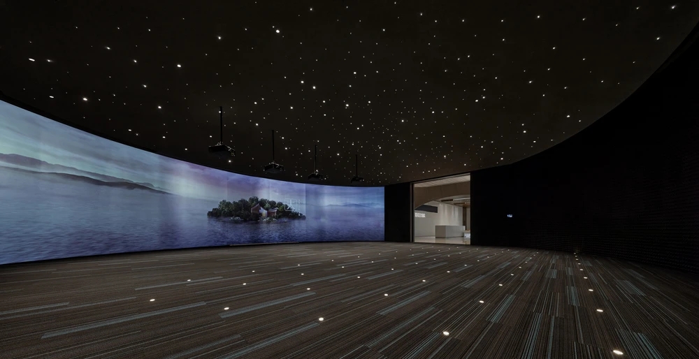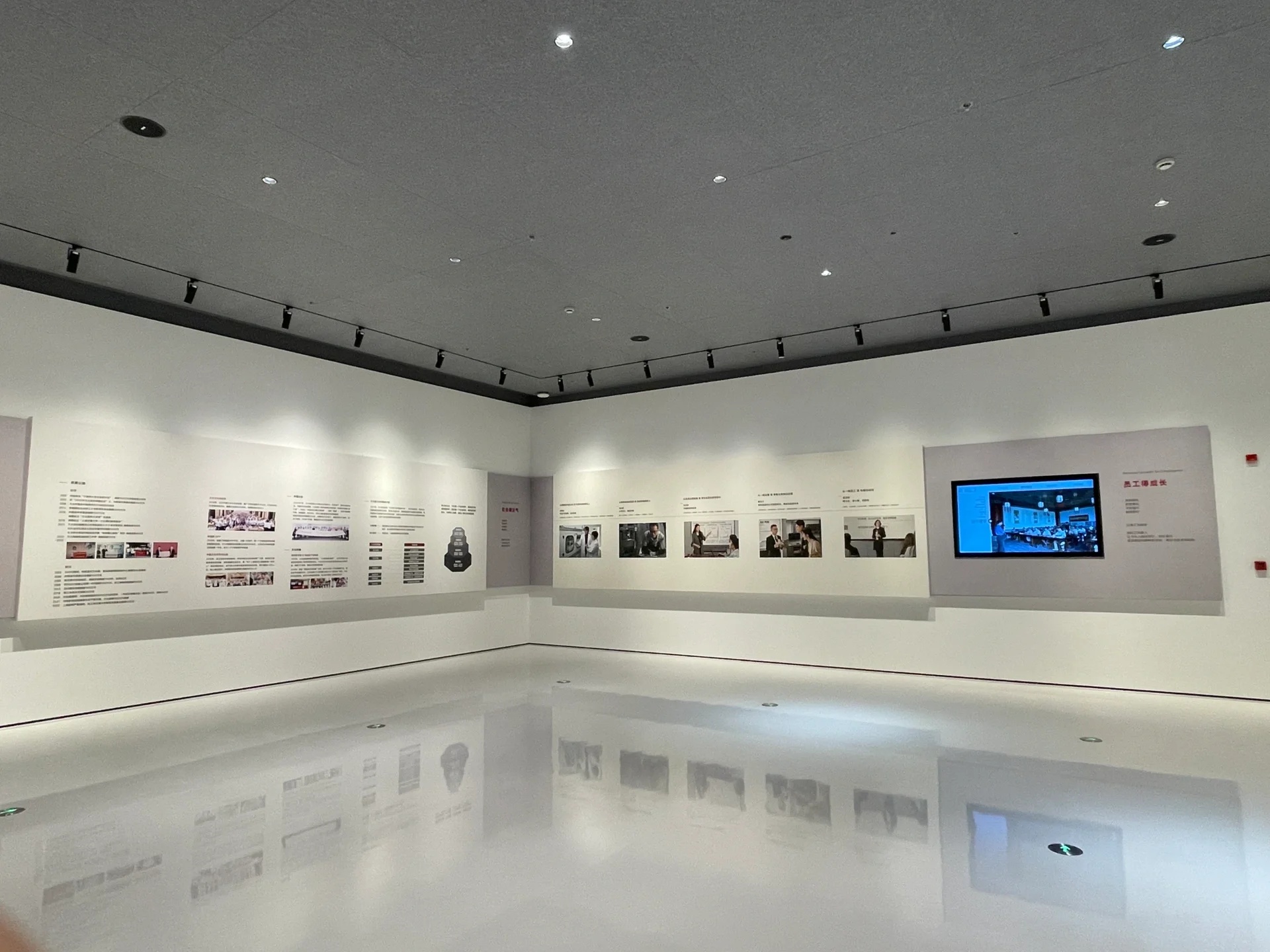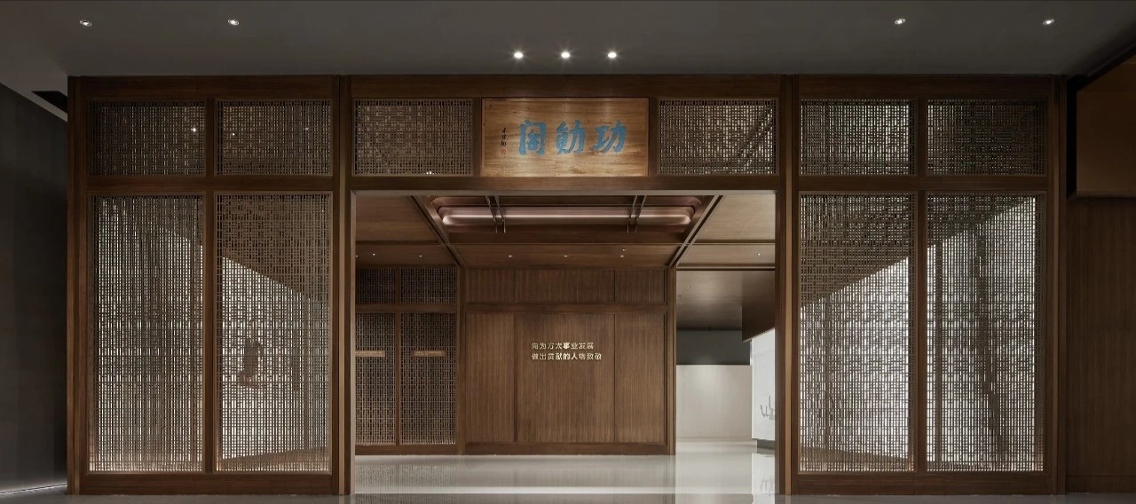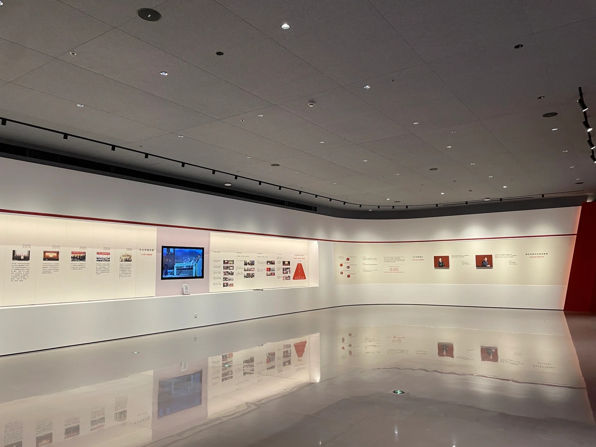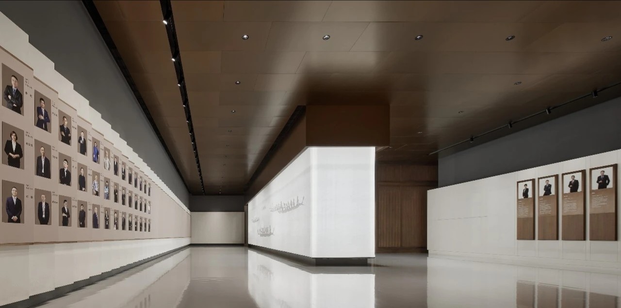 大厅设计选择使用中国红,米白这两种古韵色调作为整个展厅空间主色调进行贯穿。在墙上,莲花图案徐徐呈现,莲通廉,盛放状,象征着我们党性的纯洁,高尚的情操和生机勃勃的工作状态。花瓣的形状又似船艏,寓意海事局破浪前行建设交通强国,为港航事业保驾护航。