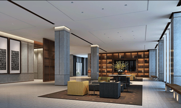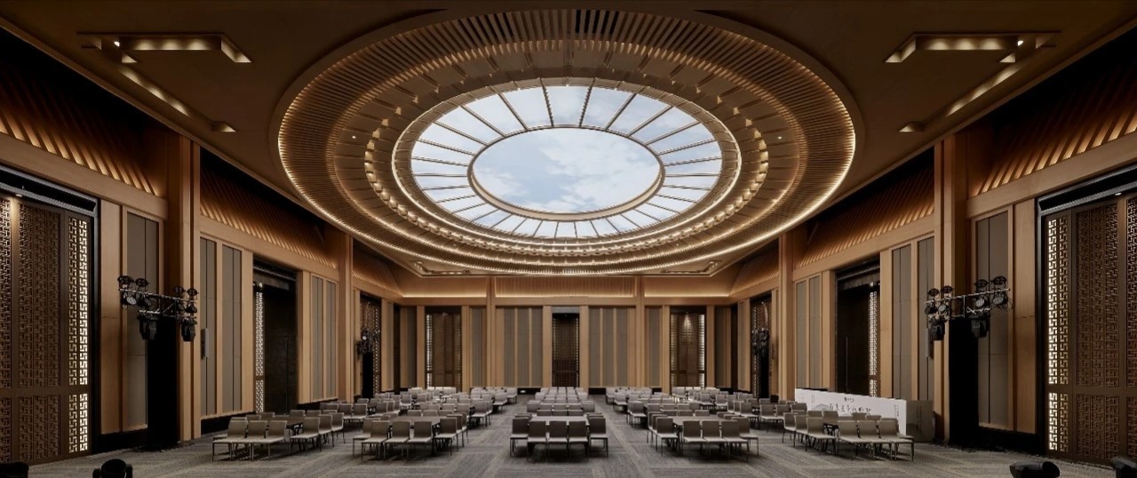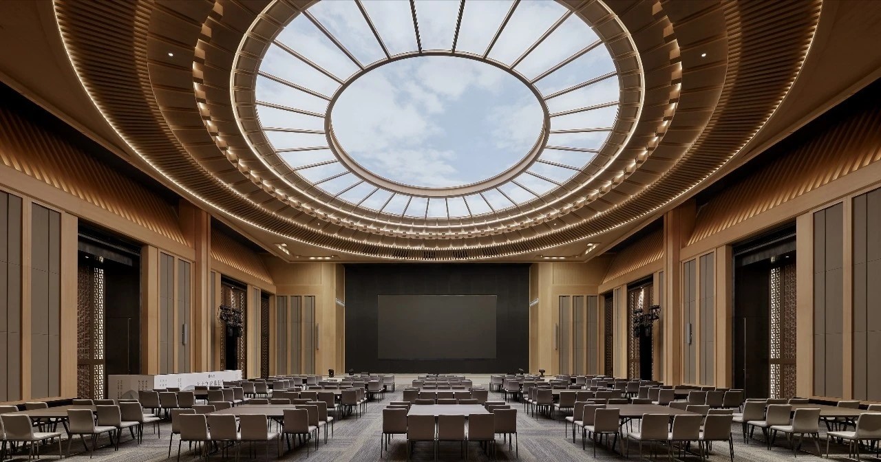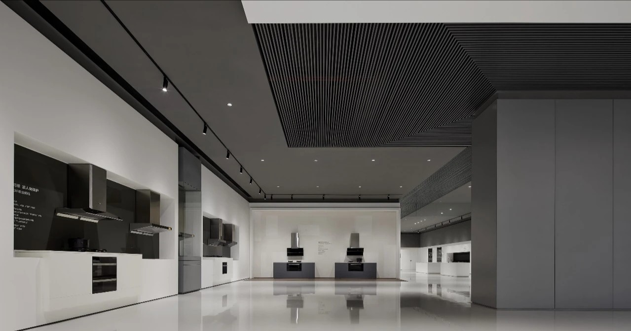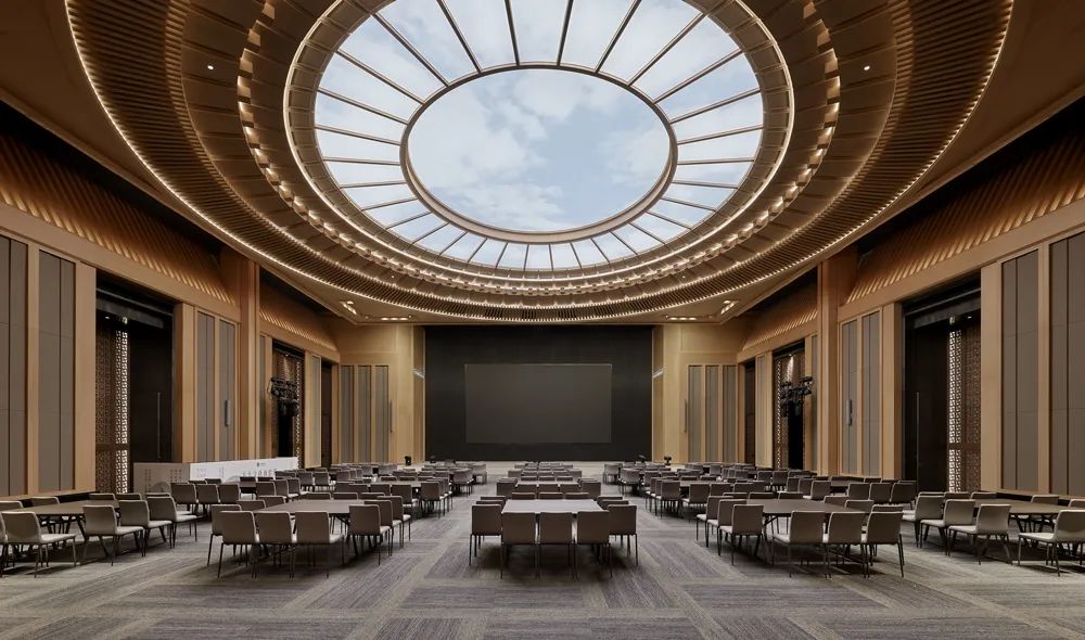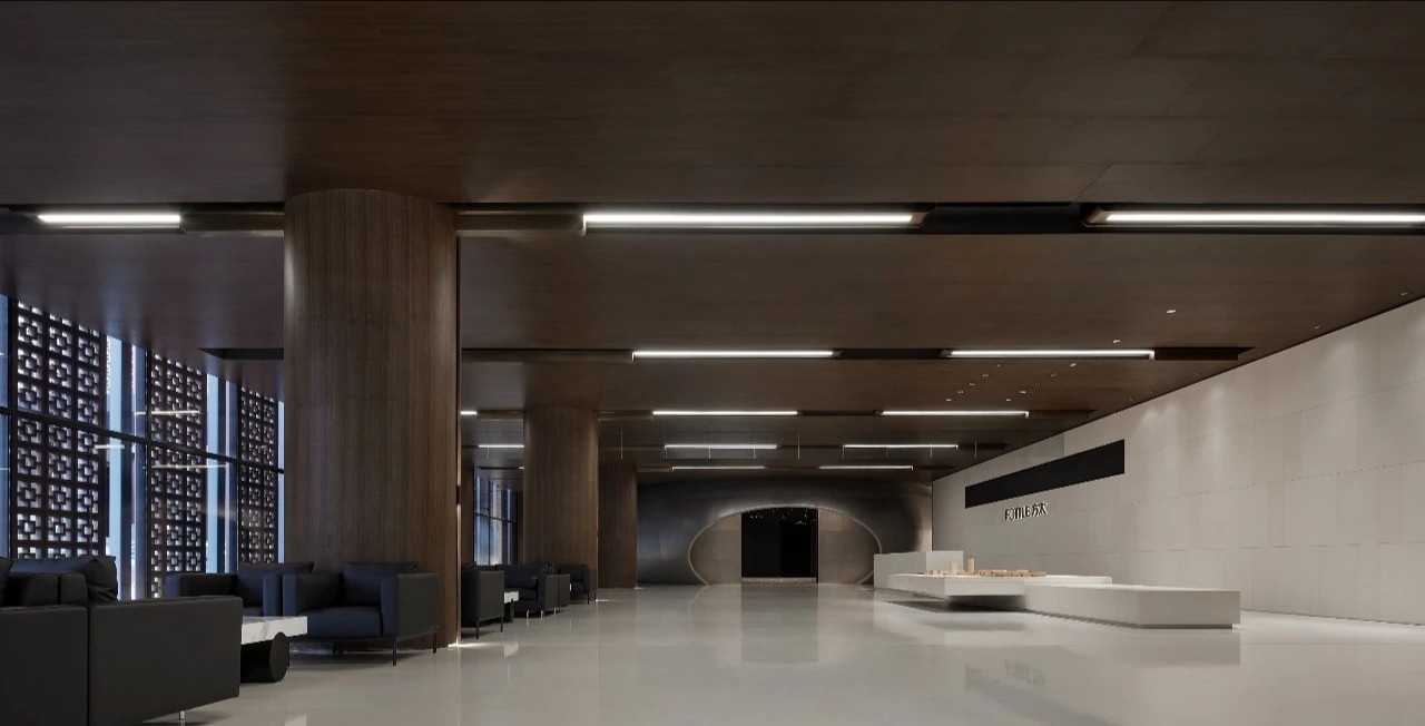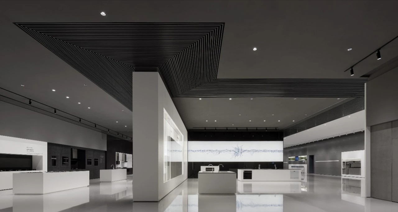 空间设计运用线性构成规划简明利落的极简格调,再用大面积灰、白红色调穿插在其中,借助温暖的灯光设计,营造出静谧优雅、庄严凝重的空间感觉与氛围。